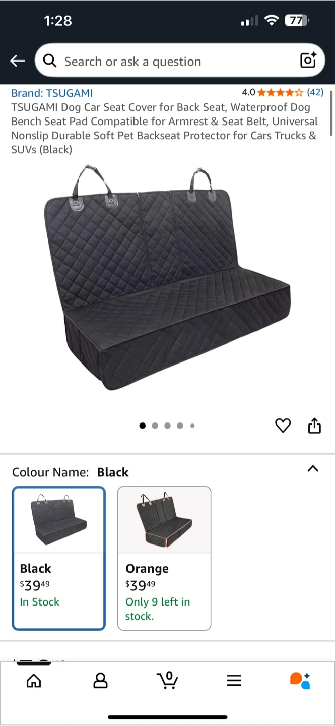 Keep your car seats protected with this TSUGAMI dog car seat cover! It's waterproof and compatible for the back seat. Designed for armrest & seat belt use, it's a universal non-slip, durable, and soft pet backseat protector for cars, trucks, and SUVs. Colour is black. Brand new never used in package