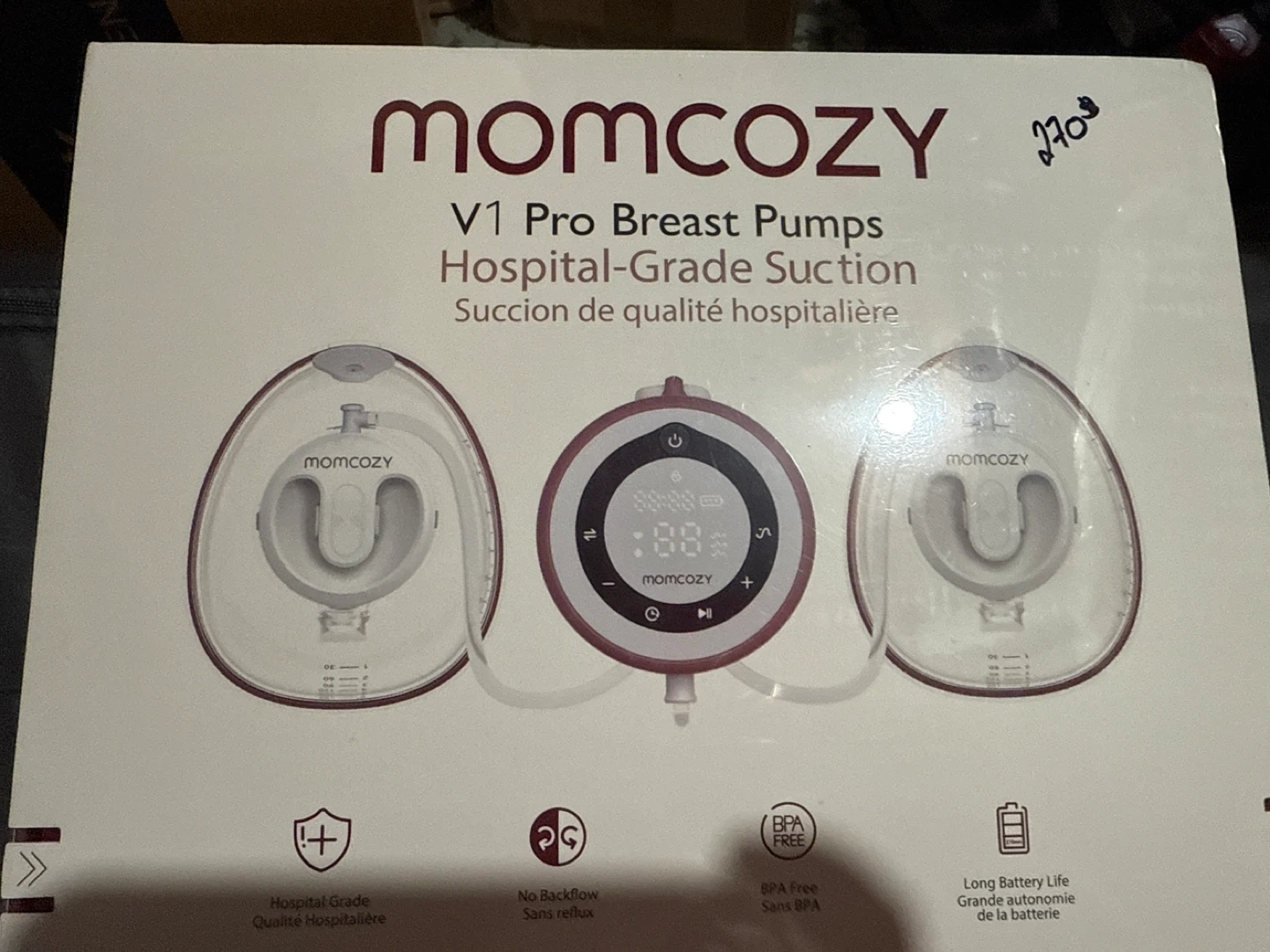 Selling a Momcozy V1 Pro Breast Pump with hospital-grade suction. It has a long battery life and is BPA free. This pump also features no backflow. Comes in its original box!