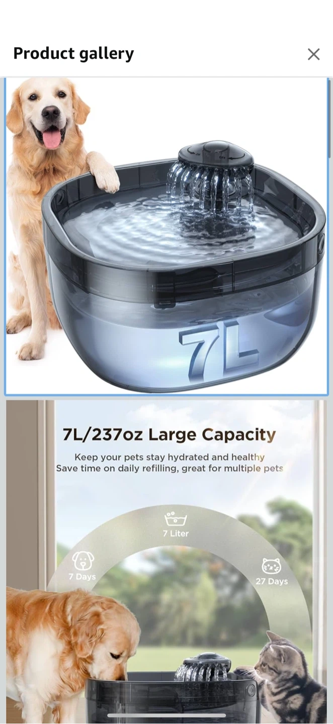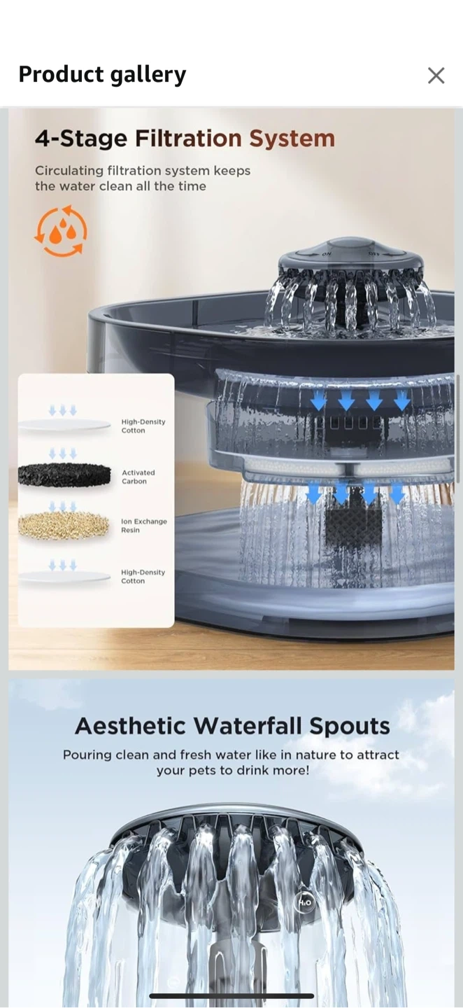 Keep your pets hydrated with this FeelGoodly pet water fountain! It features a 4-stage filtration system to keep the water clean and fresh. The aesthetic waterfall spouts encourage your pets to drink more. With a large 7L capacity, you'll save time on daily refills. It also has a splash-proof water tray for less mess and is ultra-quiet so it won't disturb your pet's rest