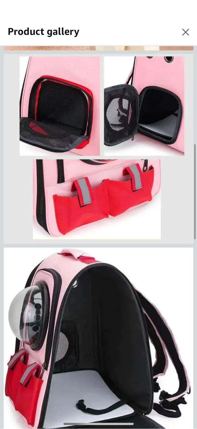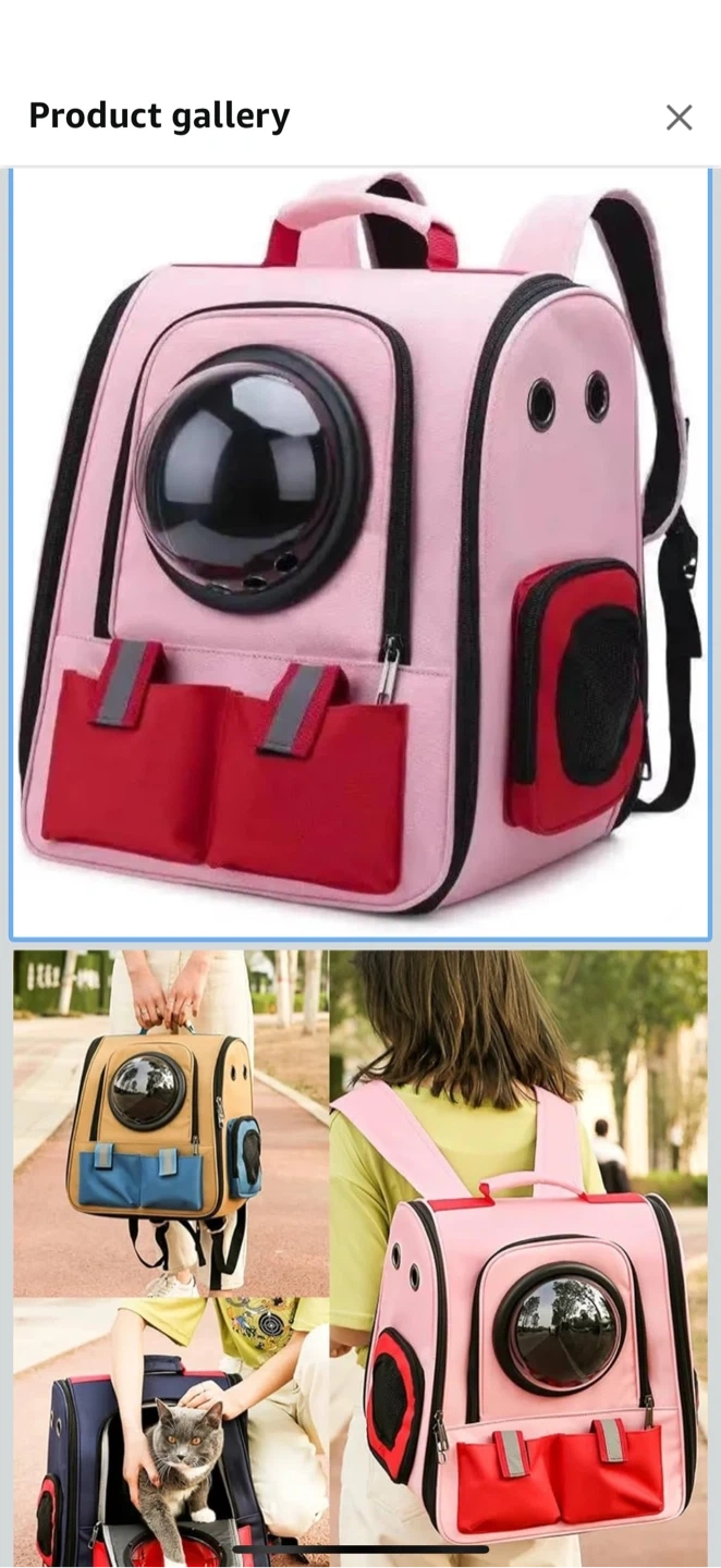 Check out this cute pink pet carrier backpack! It's got a fun space capsule design with a clear window so your furry friend can see the world. Perfect for small dogs or cats, it's a comfy and stylish way to travel together