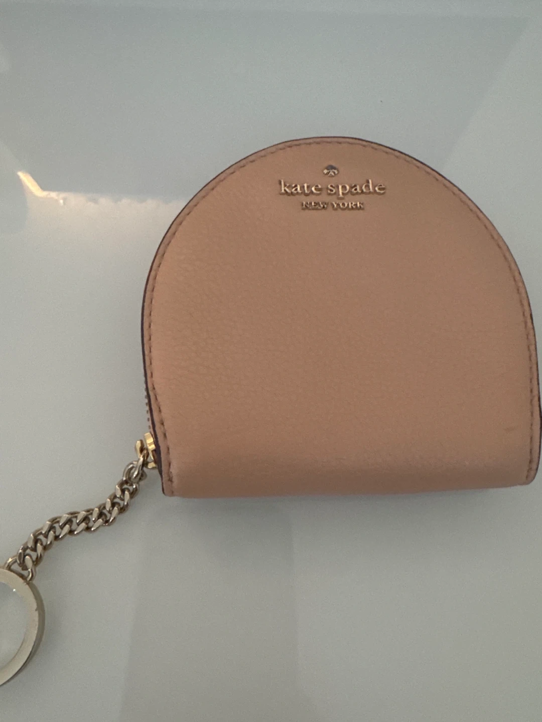 Selling a cute Kate Spade coin purse in a lovely beige colour! It's in great condition and perfect for carrying your essentials. The interior has card slots and a fun spade pattern lining