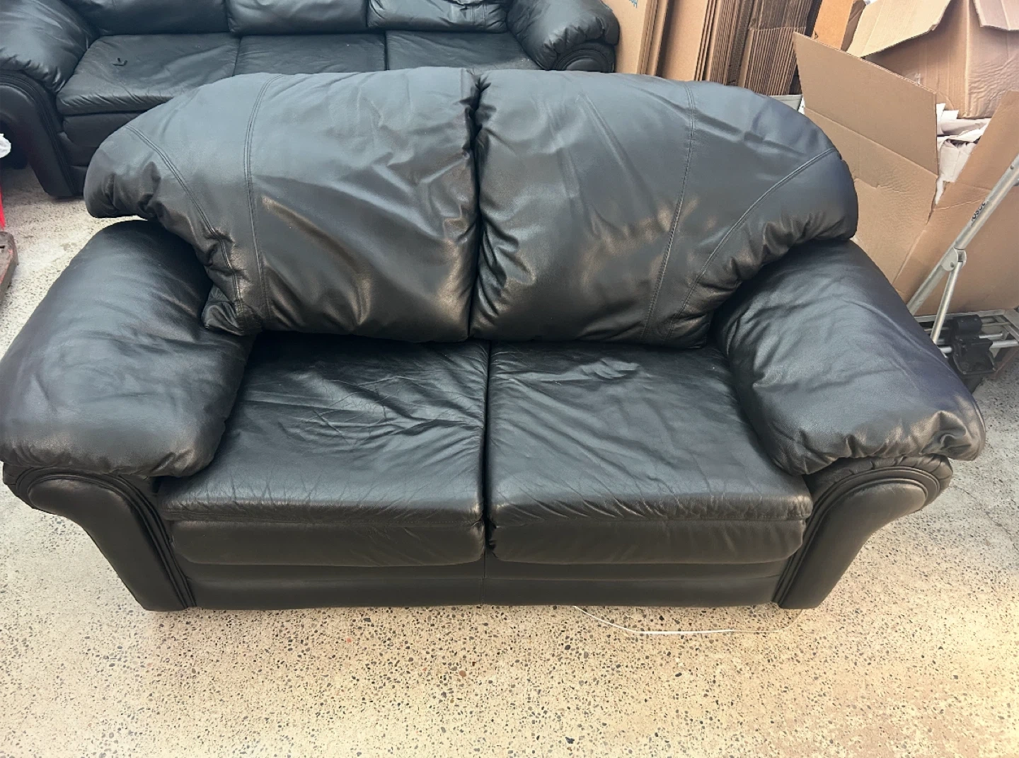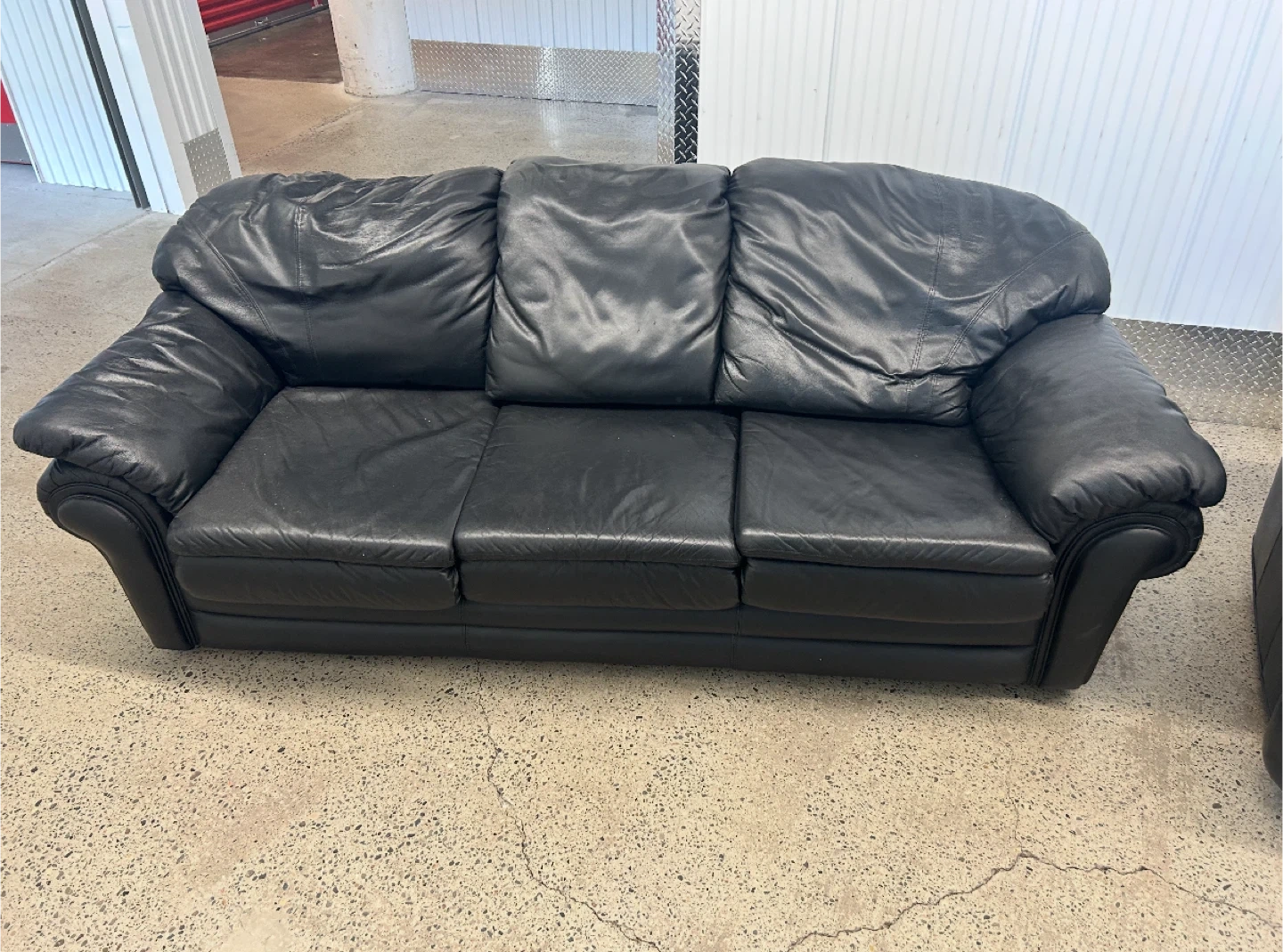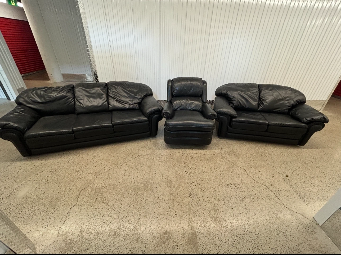 Selling a black leather sofa set, which includes a 3-seater sofa, a 2-seater sofa, and a recliner. The set is in used condition but still has plenty of life left! It's perfect for a living room or entertainment area. If you're interested, please feel free to reach out Open to sell separated