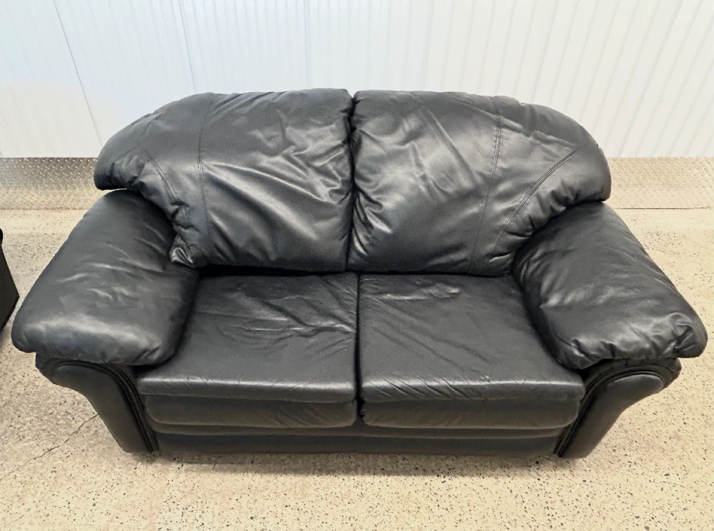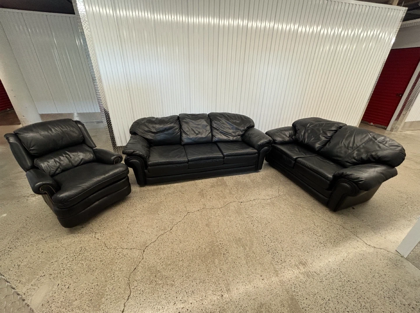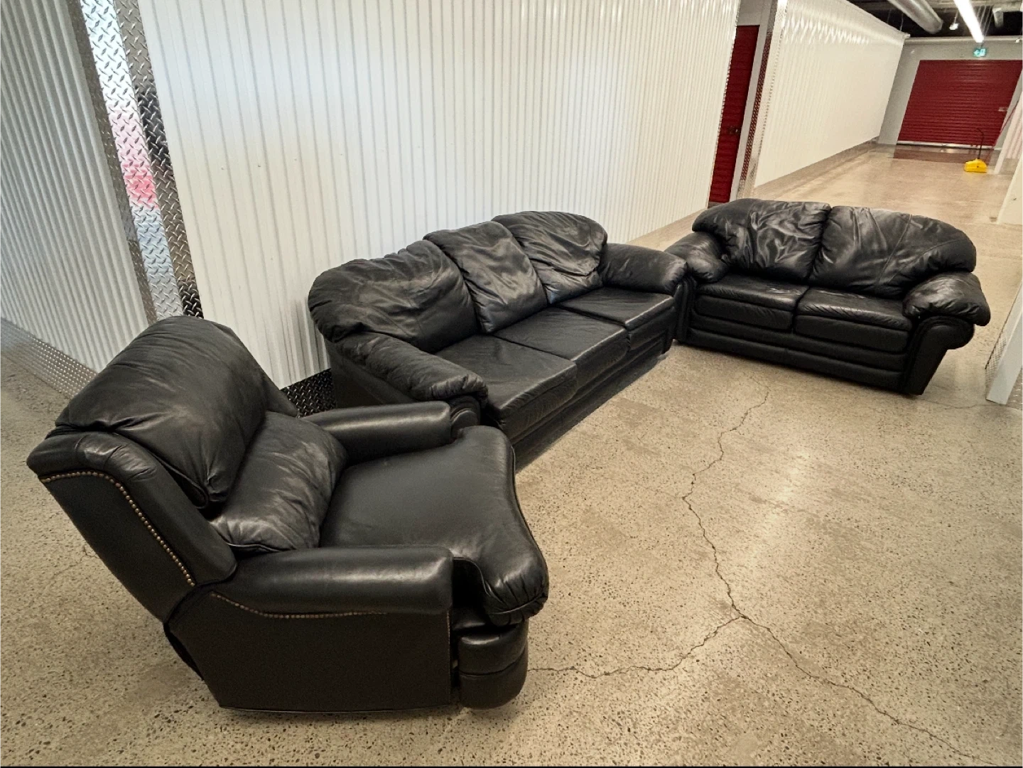 Selling a black leather sofa set, which includes a 3-seater sofa, a 2-seater sofa, and a recliner. The set is in used condition but still has plenty of life left! It's perfect for a living room or entertainment area. If you're interested, please feel free to reach out Open to sell separated