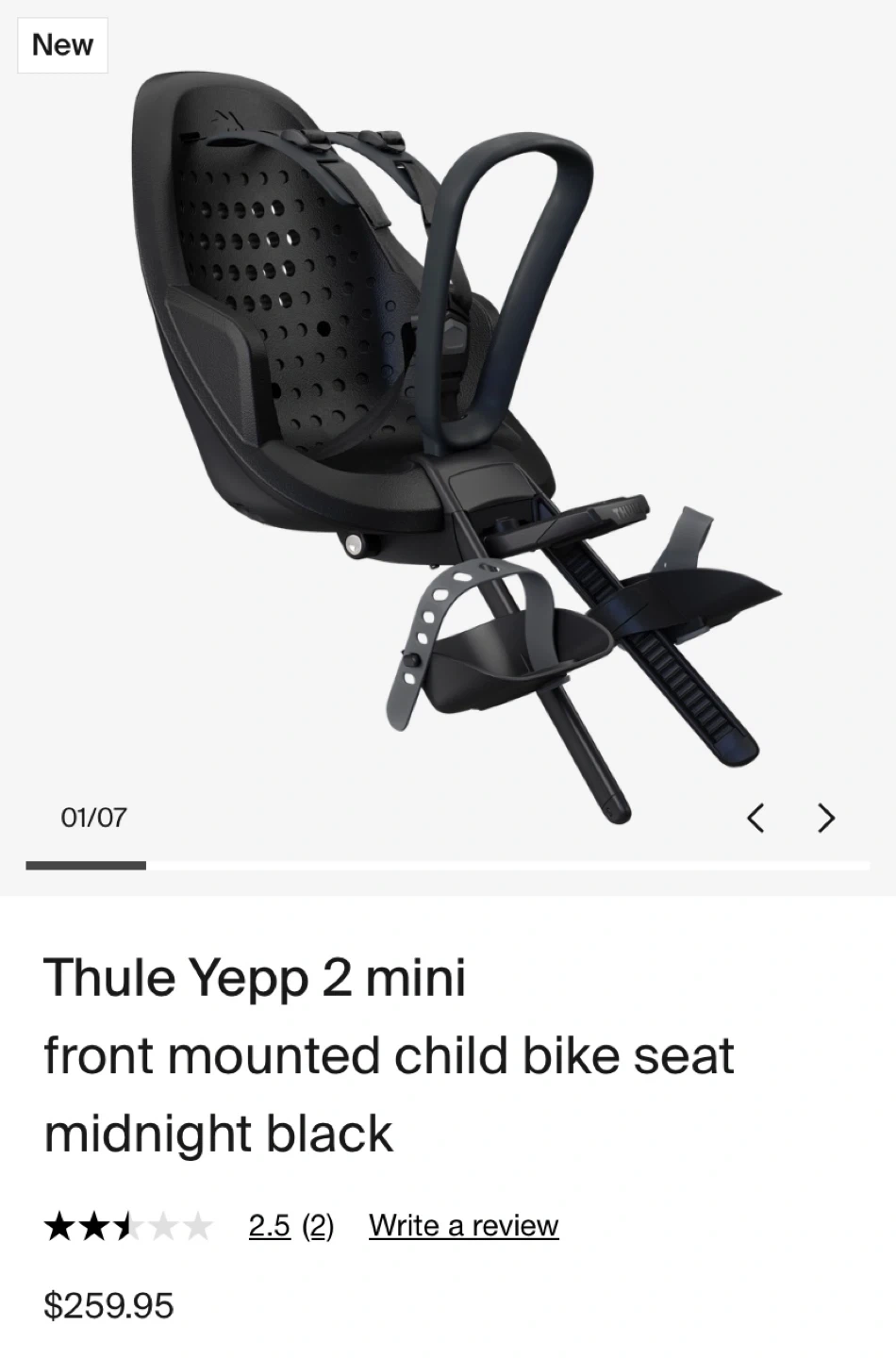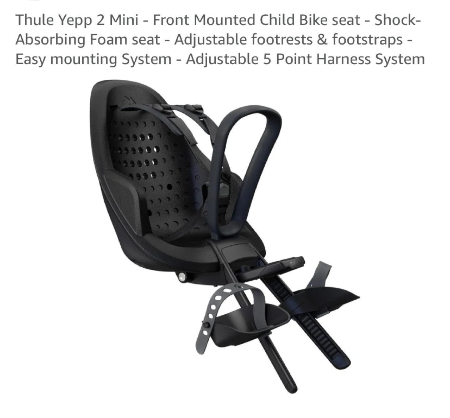 New, open box Thule Yepp 2 Mini Front Mounted Child Bike Seat Black $200 (retail $$259 plus tax) Pickup in Whitby Designed and tested for children from 9 months* to 3 years old, up to 33 lbs/15 kg