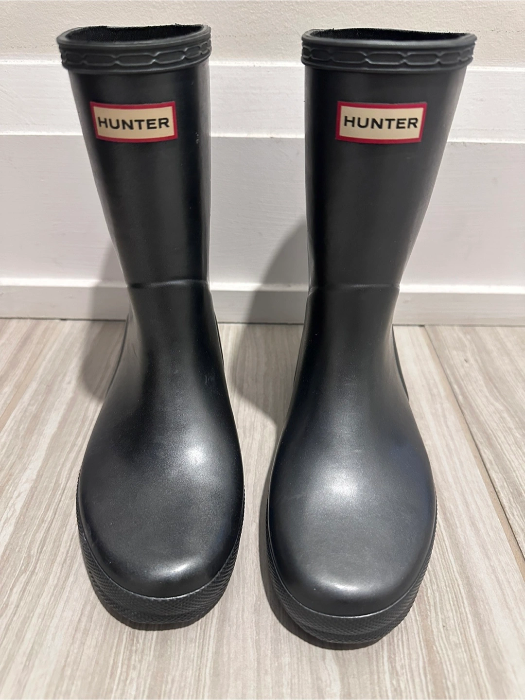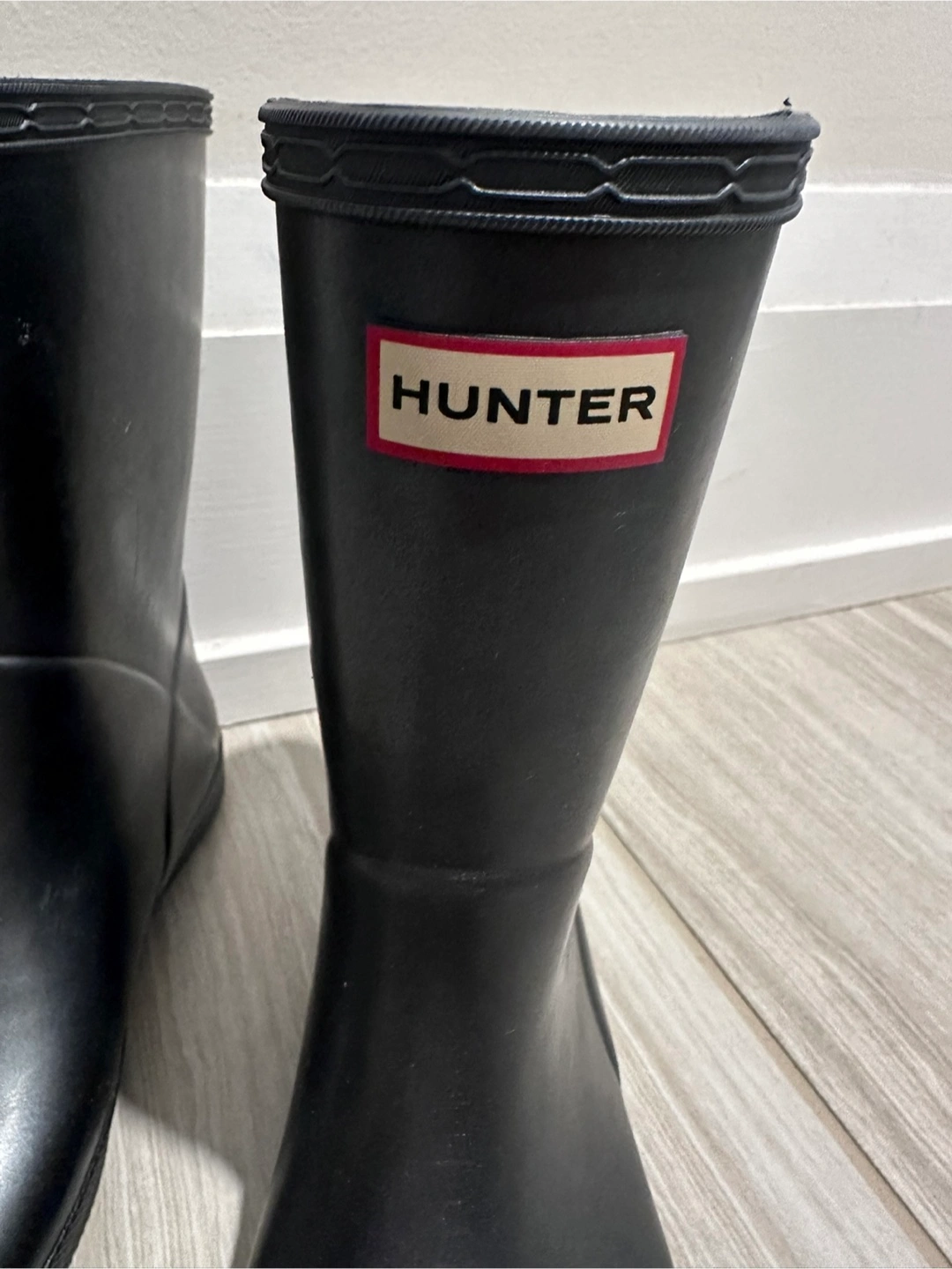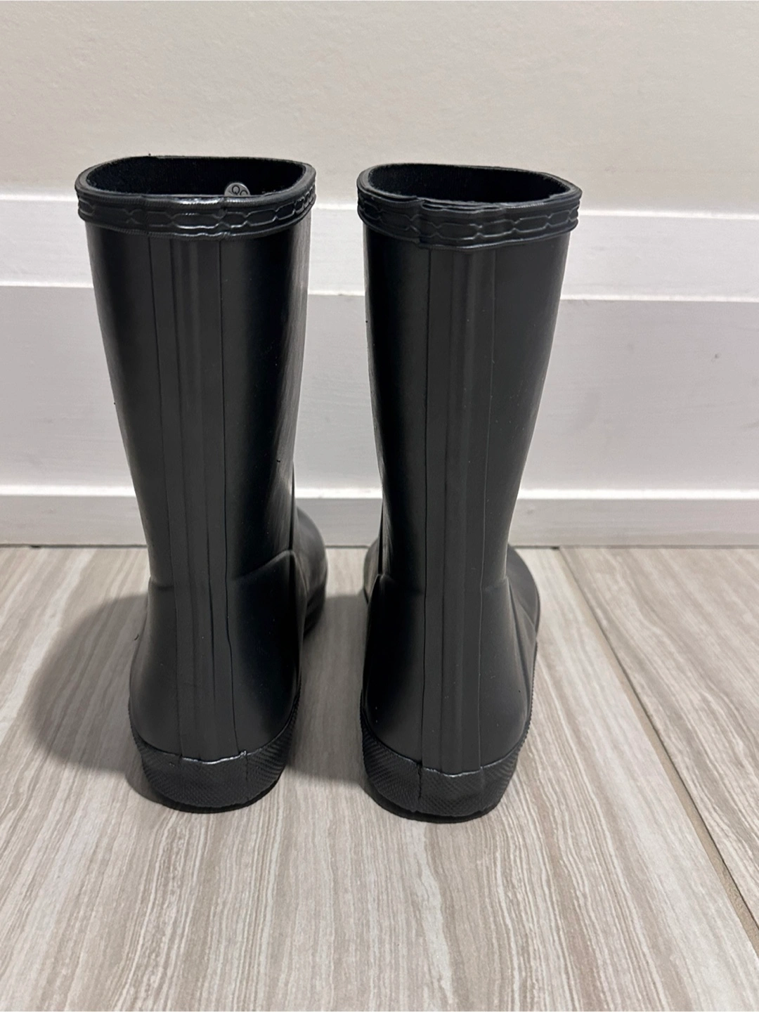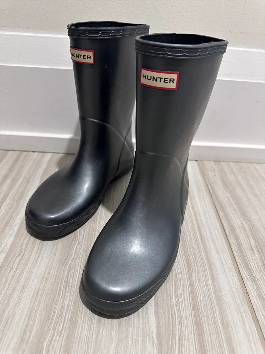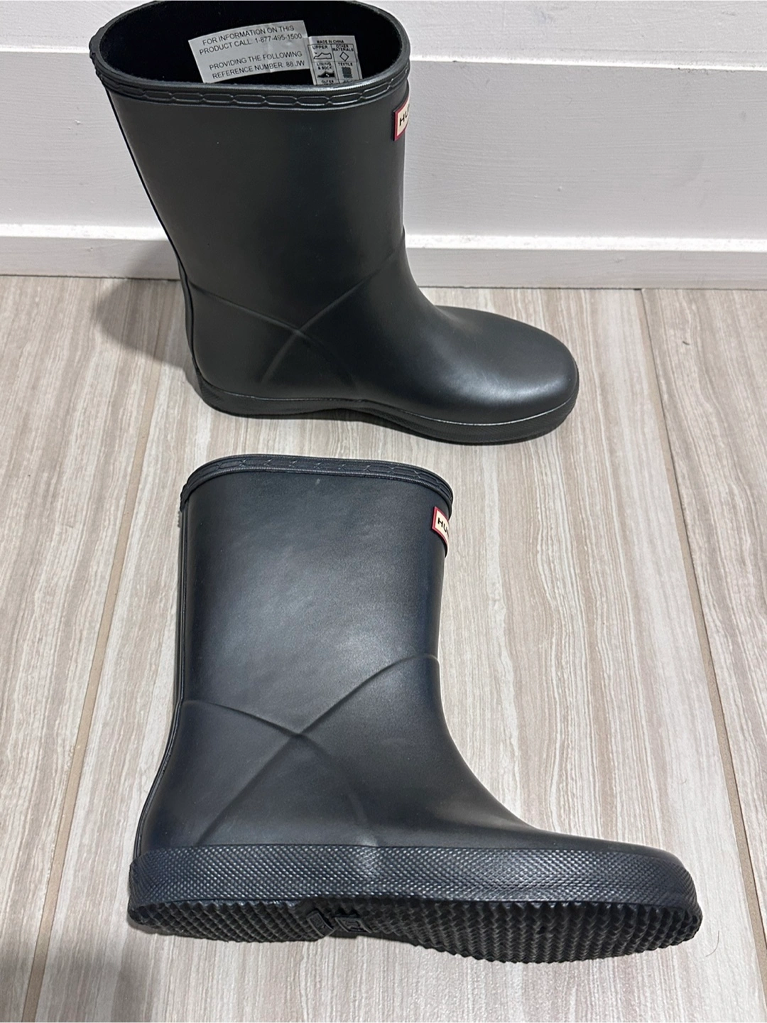 Selling a pair of brand new Hunter Kids First Classic Rain Boots in junior size US 2 (UK 1, EU 33). Color is dark metallic grey. These boots are perfect for keeping your little one's feet dry and comfortable on rainy days. The classic design and durable construction make them a great choice for any outdoor adventure!