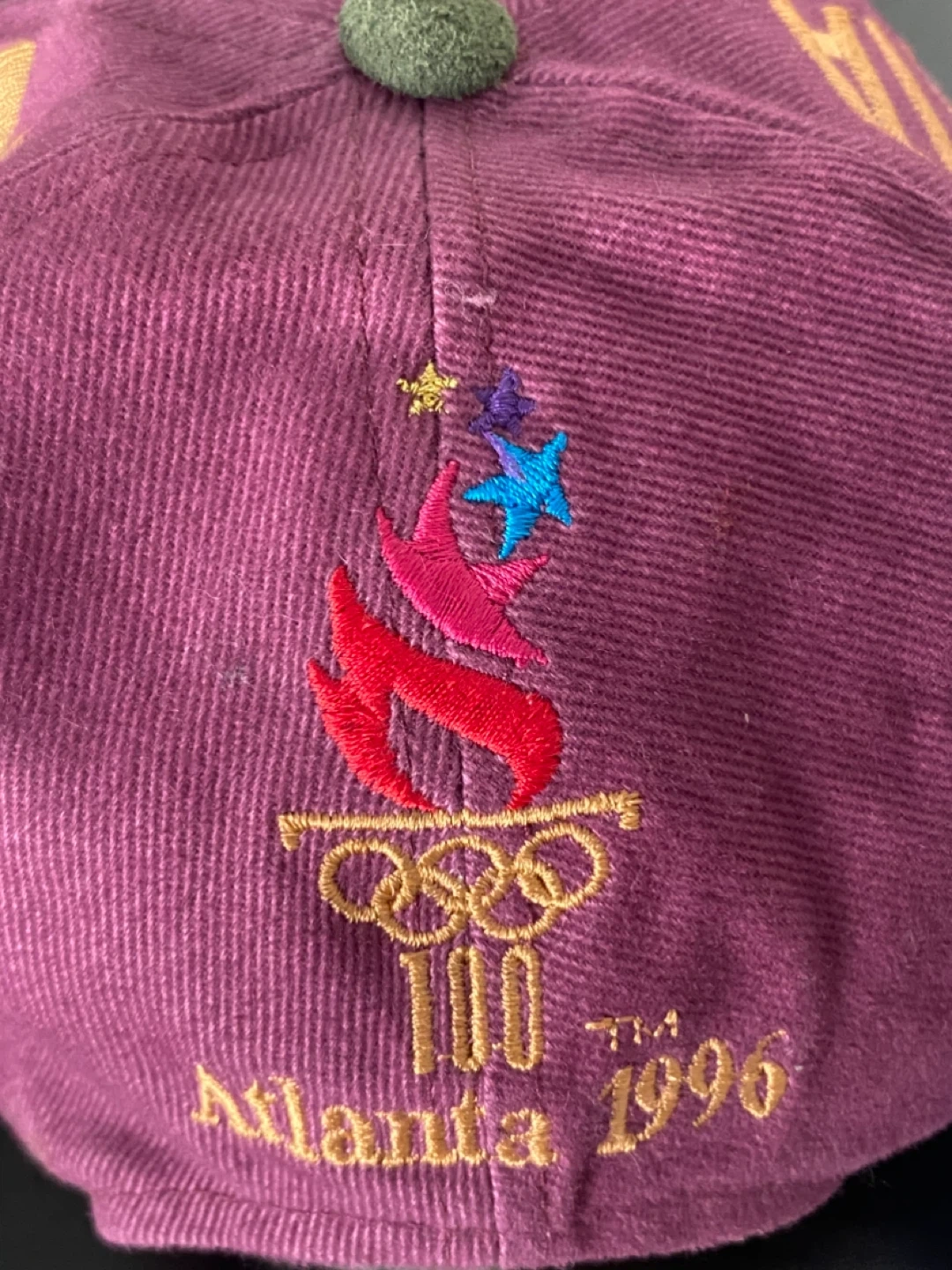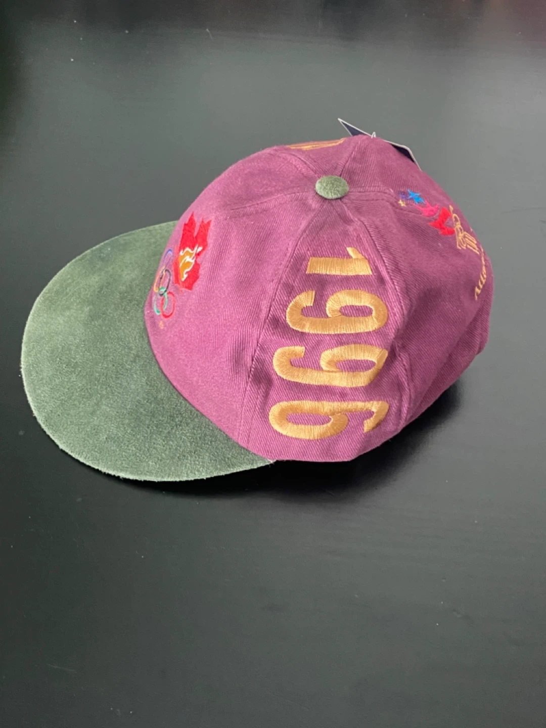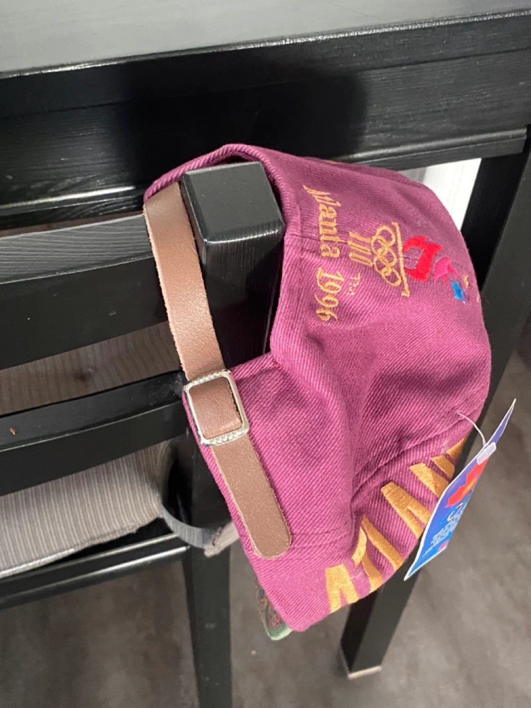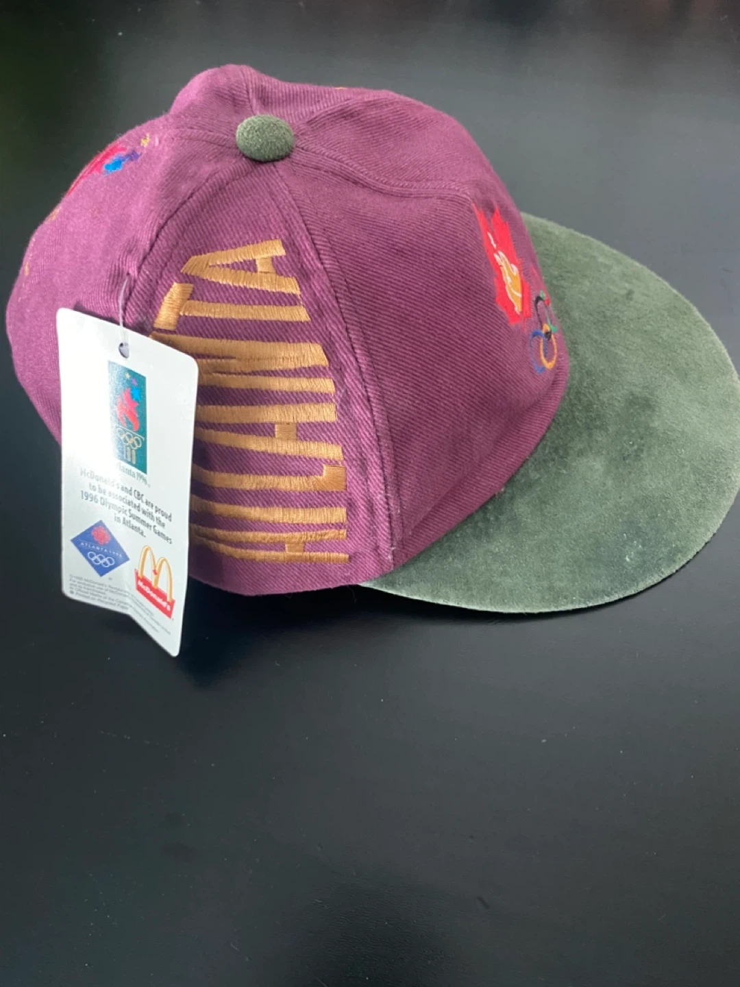 Selling a brand new Atlanta 1996 Olympics hat! This cap is a collaboration between McDonald's and CBC, celebrating the 1996 Olympic Summer Games in Atlanta. It has a unique design with the Olympic torch and the year embroidered on it. A portion of the proceeds from this hat went to support the Canadian Olympic Team to the 1996 Olympic Games. Adjustable leather strap, burgundy cap with green brim. Cash and pick up only, Cawthra and Lakeshore area in Mississauga.