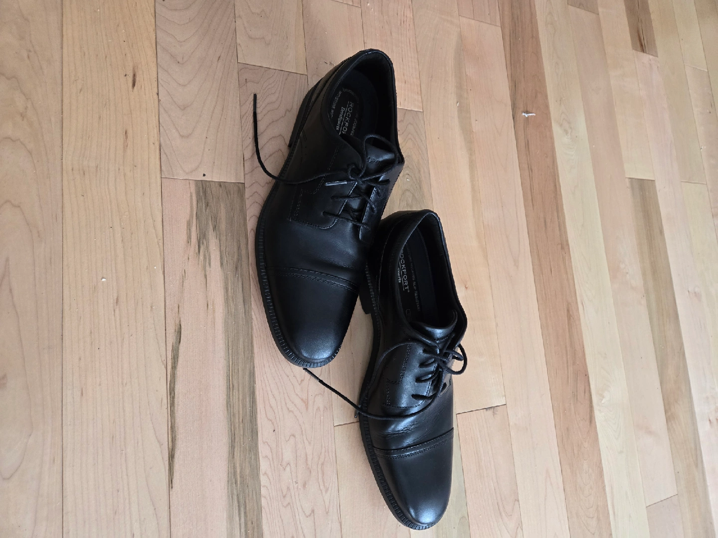 Selling a pair of brand new men's black leather dress shoes from Rockport. size is 13 US. These shoes are perfect for formal occasions or everyday wear