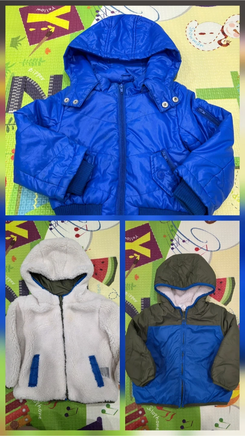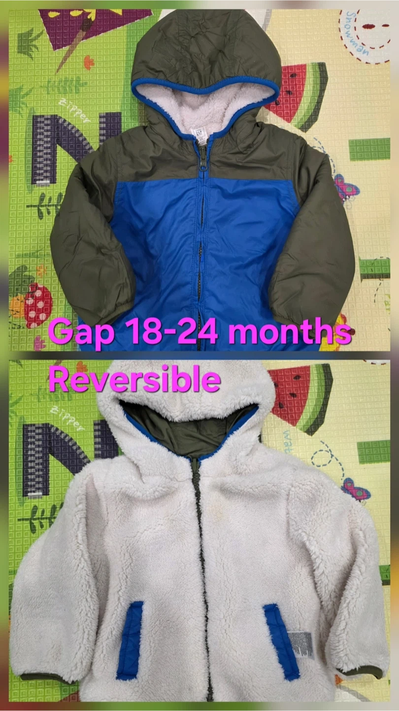 2 boys jackets 18-24 months. One reversible jacket from Gap and one puffer blue jacket.