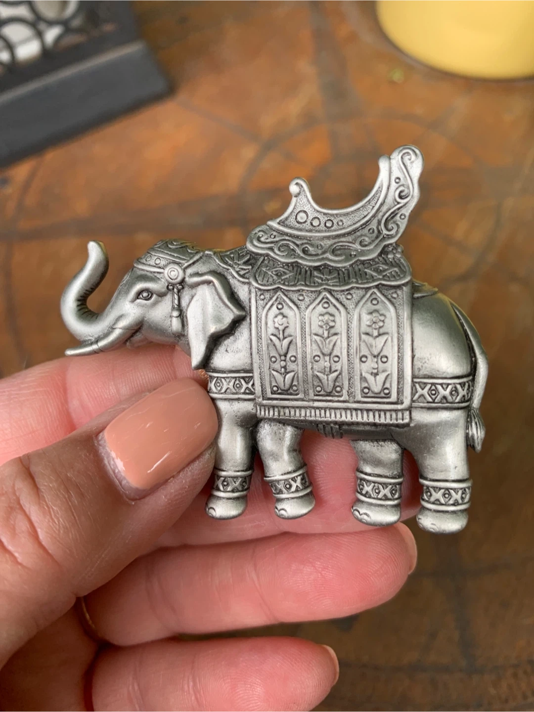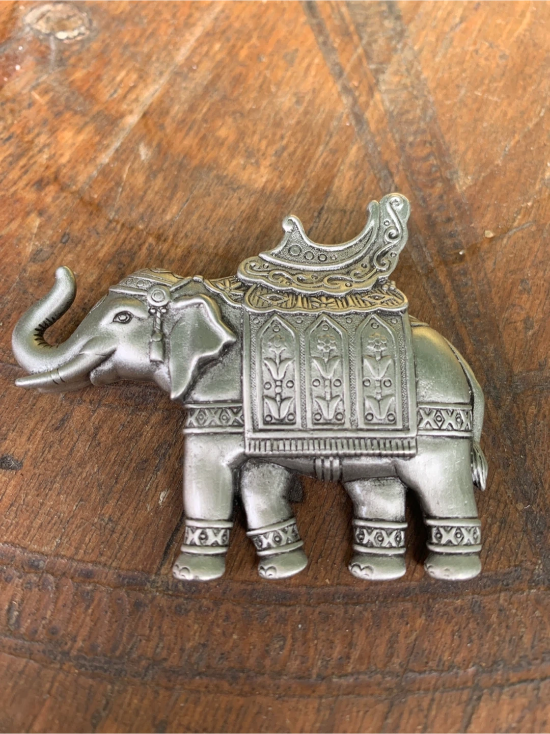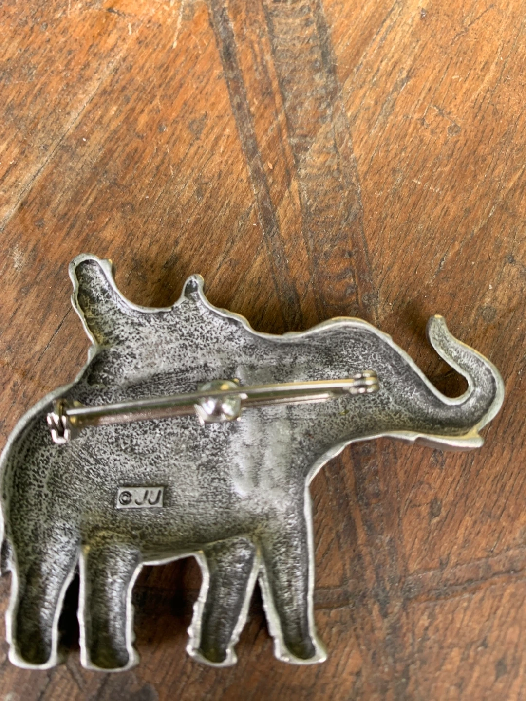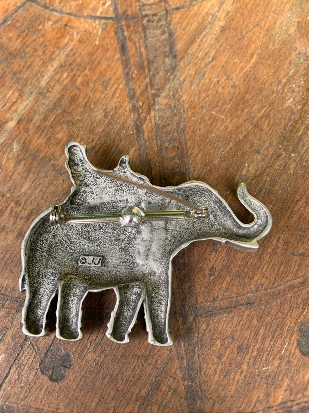 This is a JJ Jonette vintage elephant pin brooch from the 1980’s. It is pewter and in great condition! Perfect for any collector or to add a bit of flair to your outfit! Elephants are considered good luck in certain cultures. You could wear it on a piece of clothing, on a hat or to fasten a scarf. Such a cutie with great details! Cash only please.