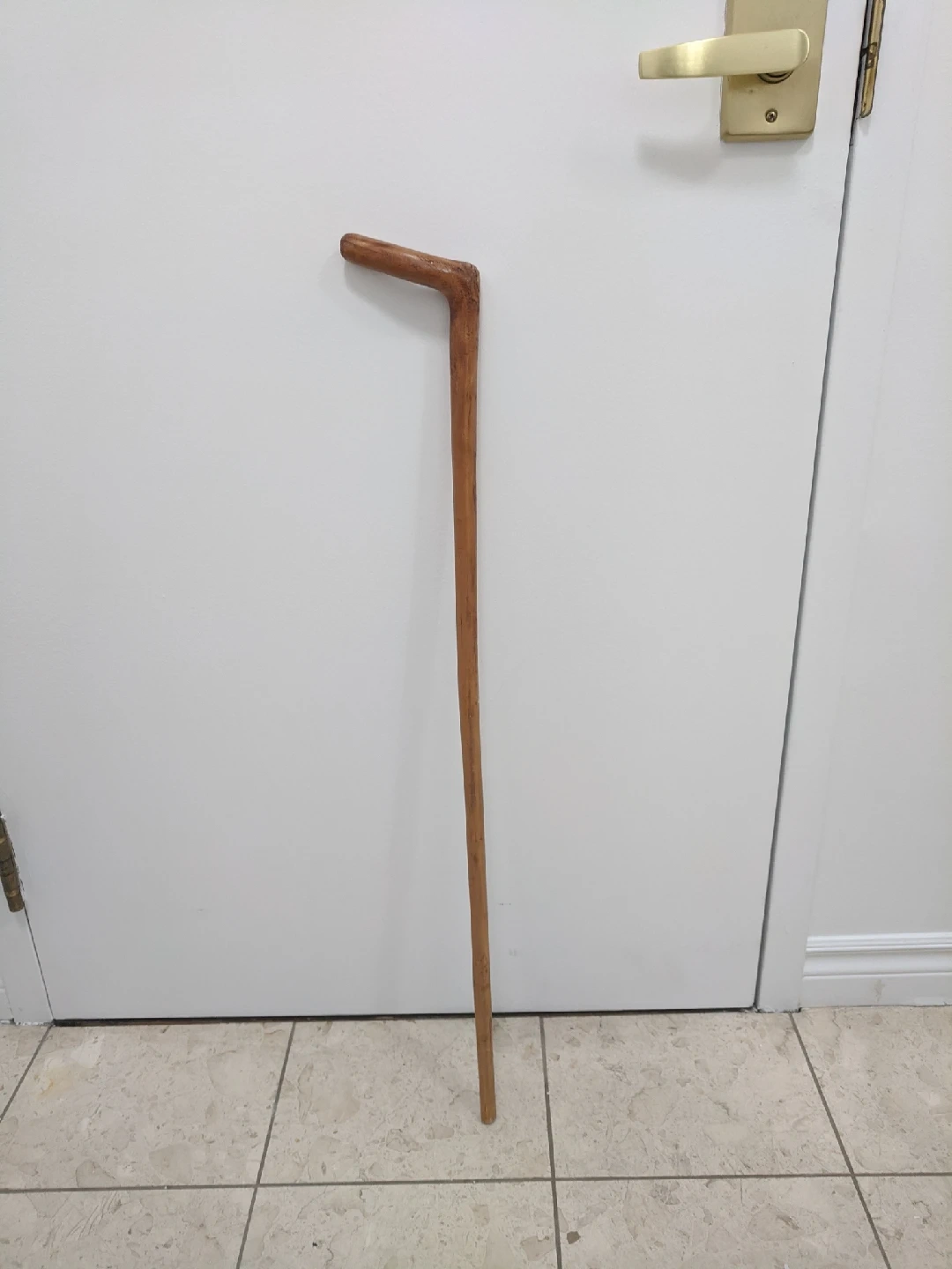 I'm selling a handcrafted walking stick, perfect for gentle strolls or as a unique decor piece. This used wooden walking stick is sturdy and has a comfortable grip. It's in good condition, ready to assist you on your next adventure or add a touch of rustic charm to your home! Whether you're scaling mountains or just navigating the urban jungle, this walking stick is ready to go with you. Pick up at 195 Merton Street Toronto or pick up at the subway station Davisvill. And I can deliver it to your house but you need to pay me another$3. Thanks.