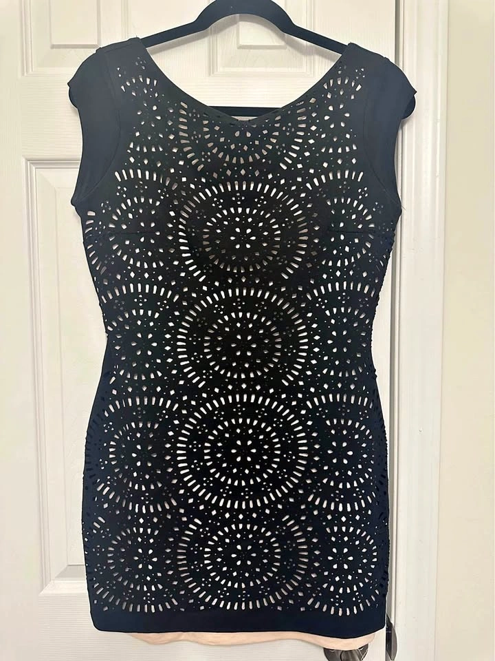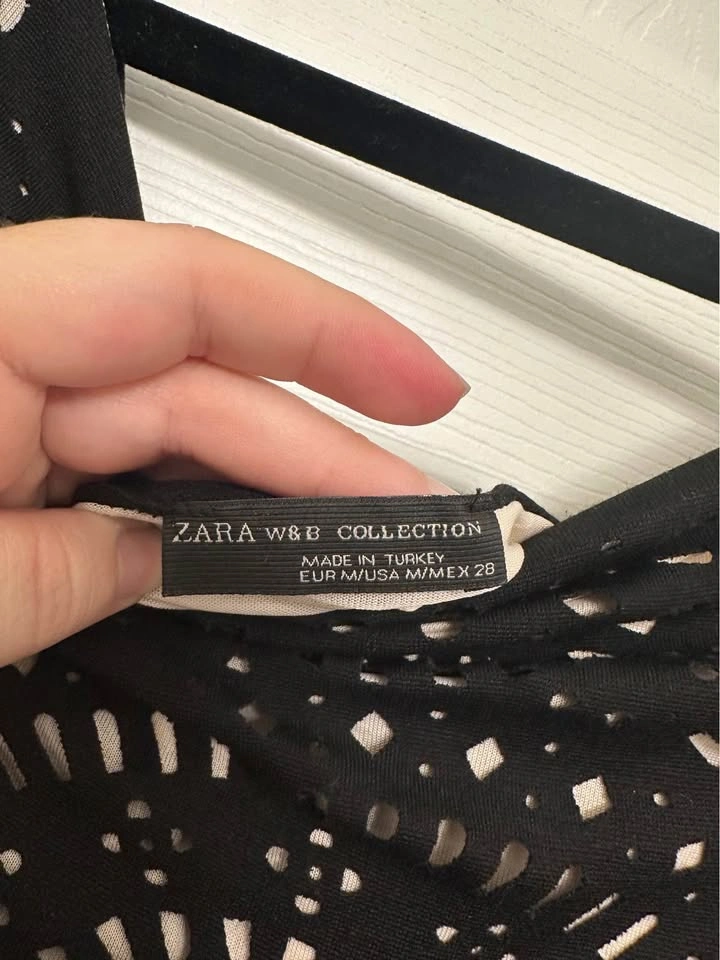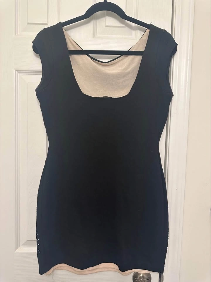 Black party dress with peach slip from Zara, size 28