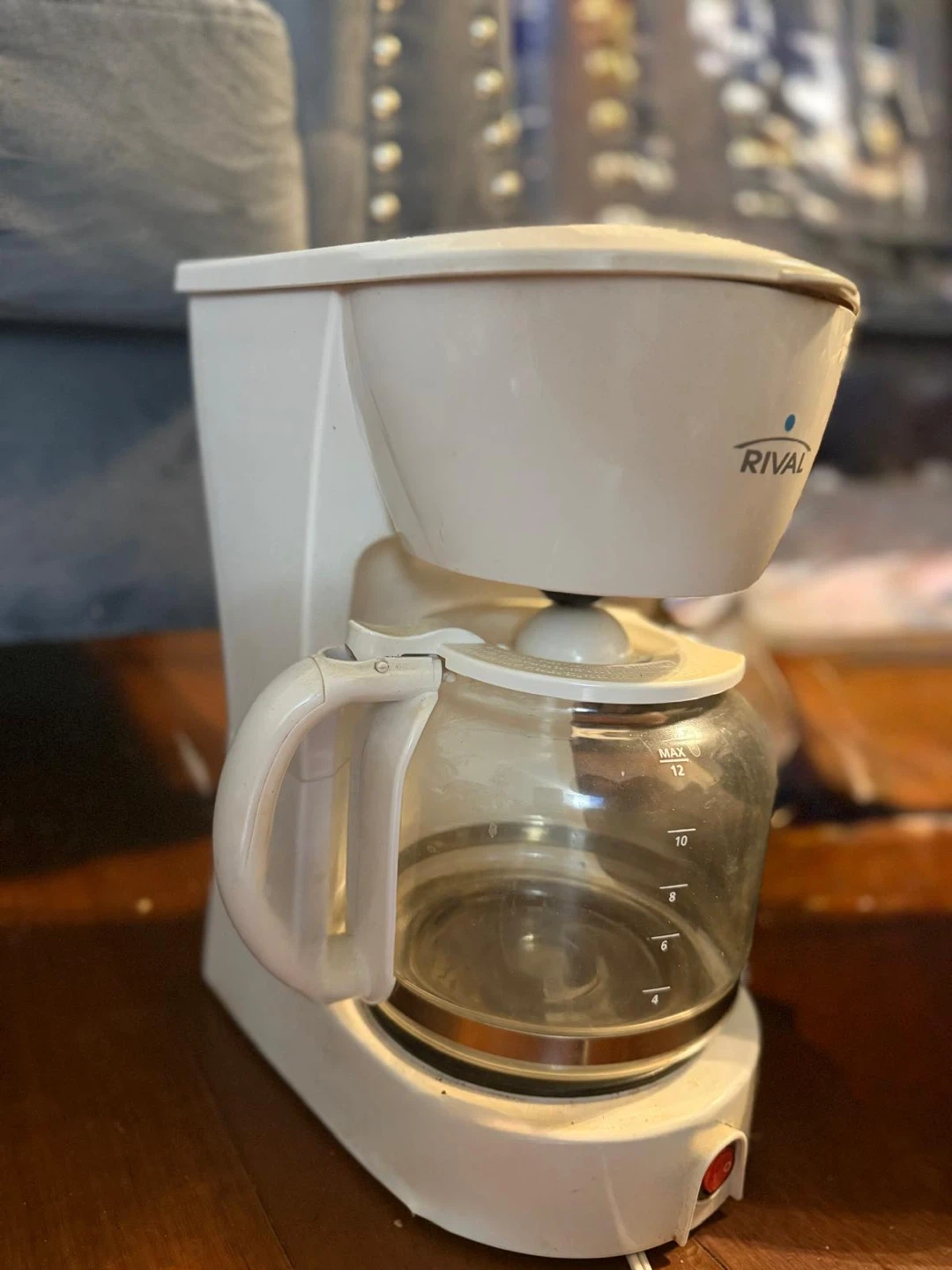 I'm selling a Rival coffee maker. It has a glass carafe with a 12-cup capacity. Perfect for brewing your morning coffee!