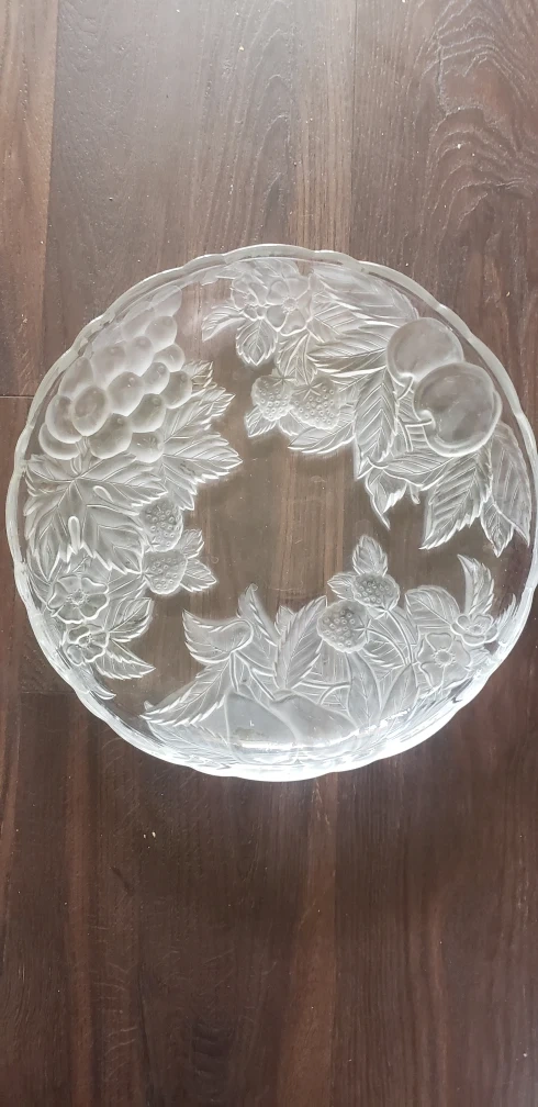 Selling a beautiful Luscious Crystal Platter. It's a 14-inch round platter with a lovely floral design. It comes in its original box, perfect for adding a touch of elegance to your table!