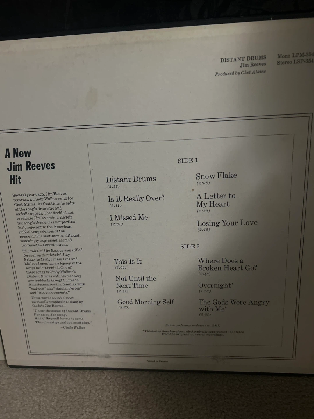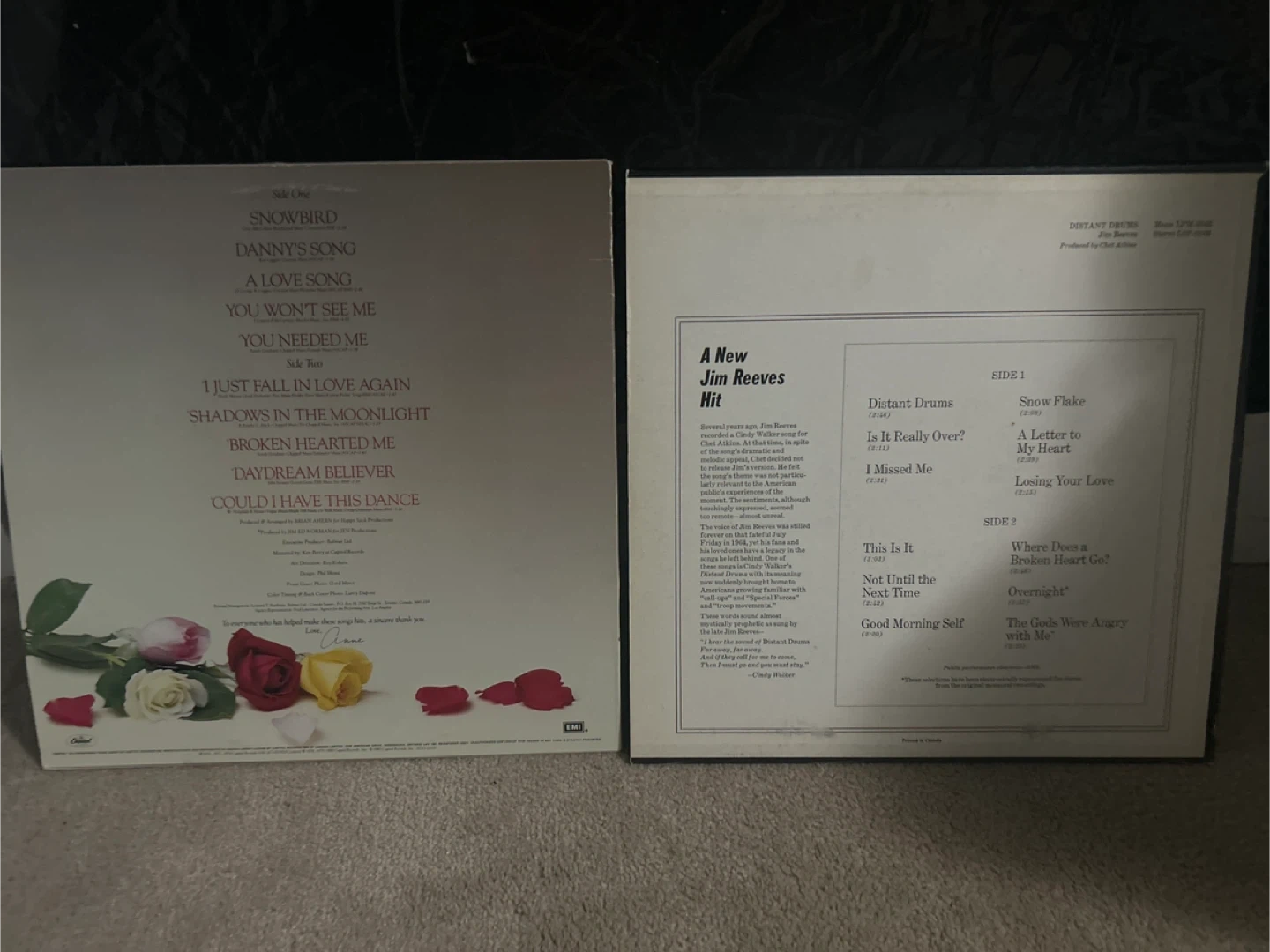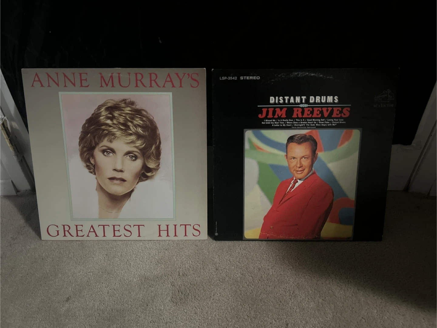 Selling two classic vinyl records: Anne Murray's Greatest Hits and Jim Reeves' Distant Drums! Both records are in good condition and ready to be enjoyed by a new music lover. Perfect for adding some vintage charm to your record collection! Looking for $5 for both vinyls and $2.50 per vinyl but open to offers