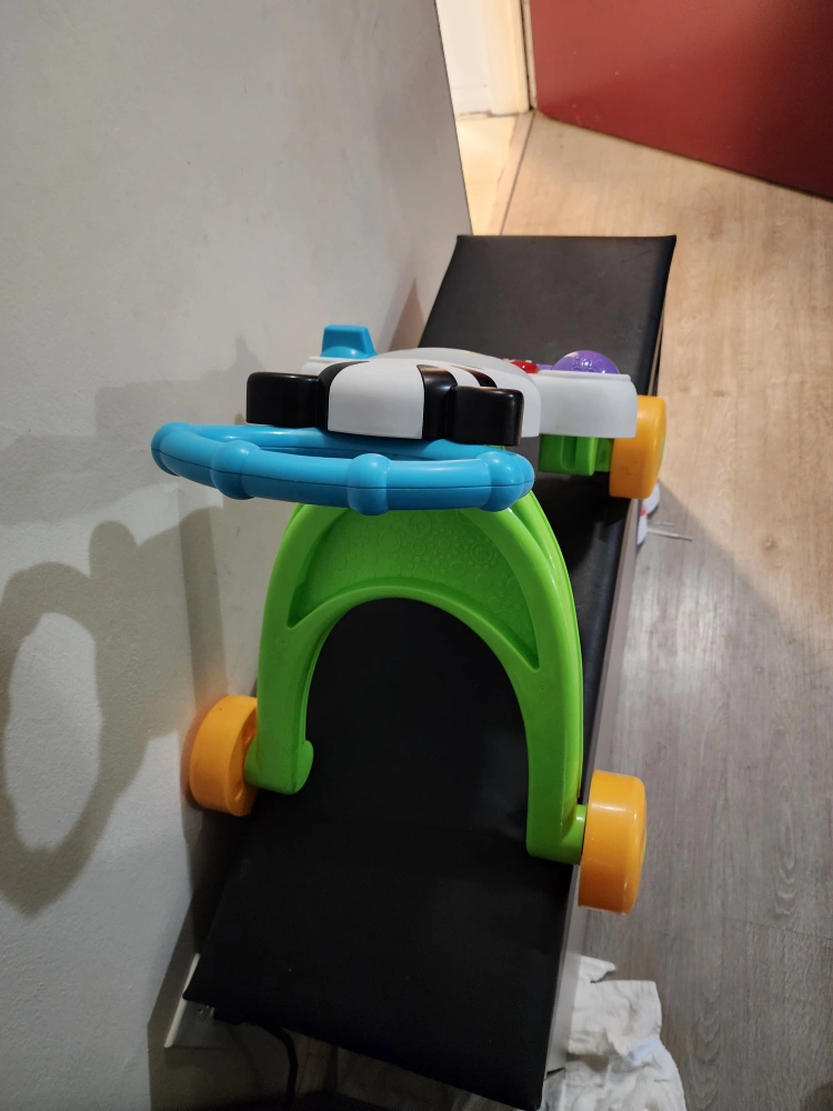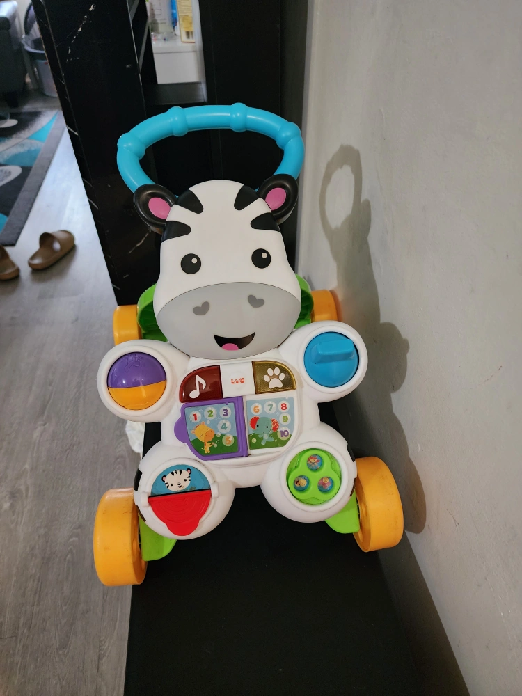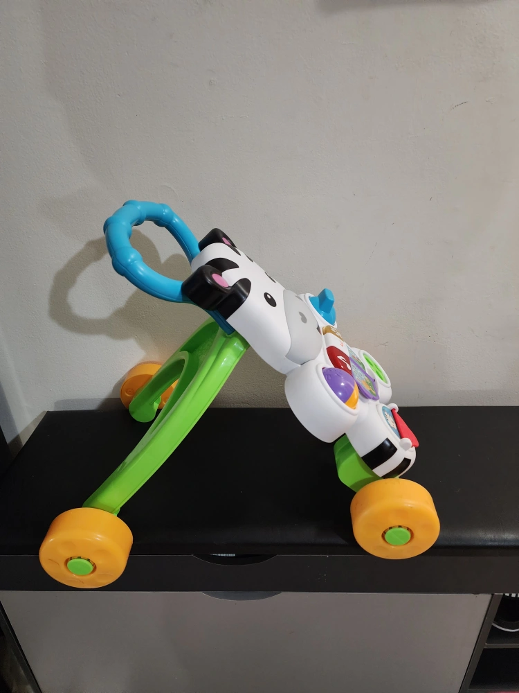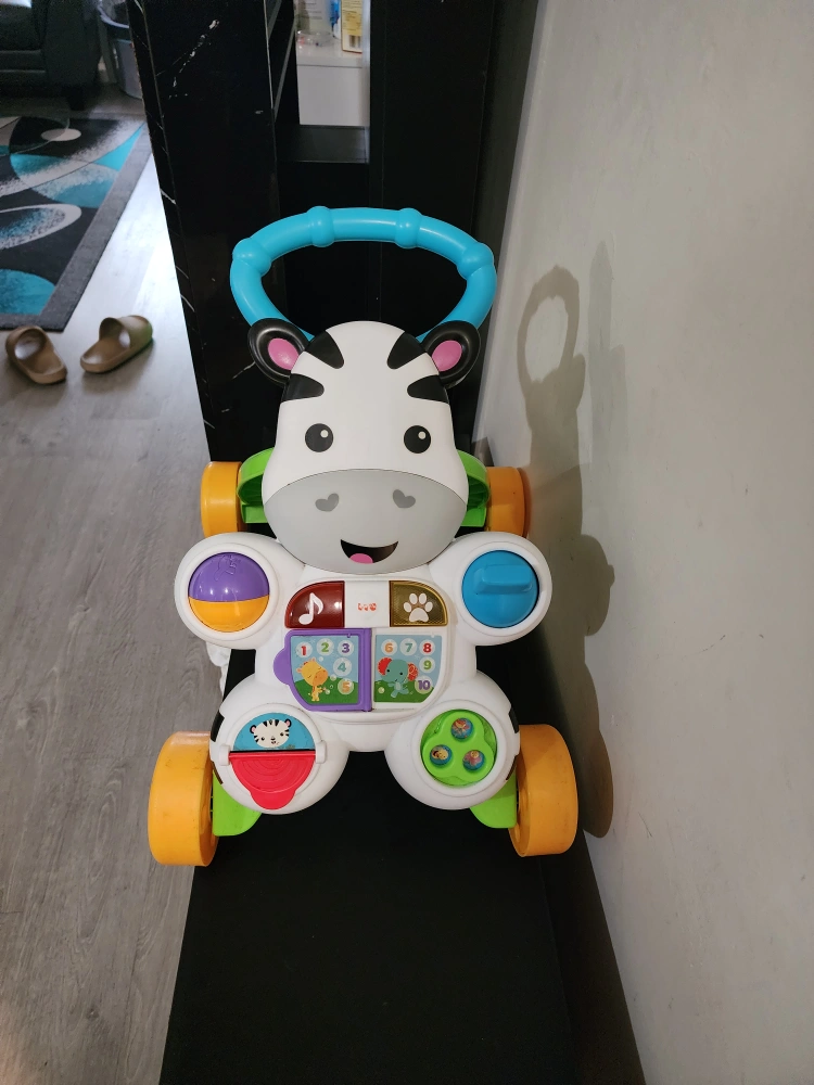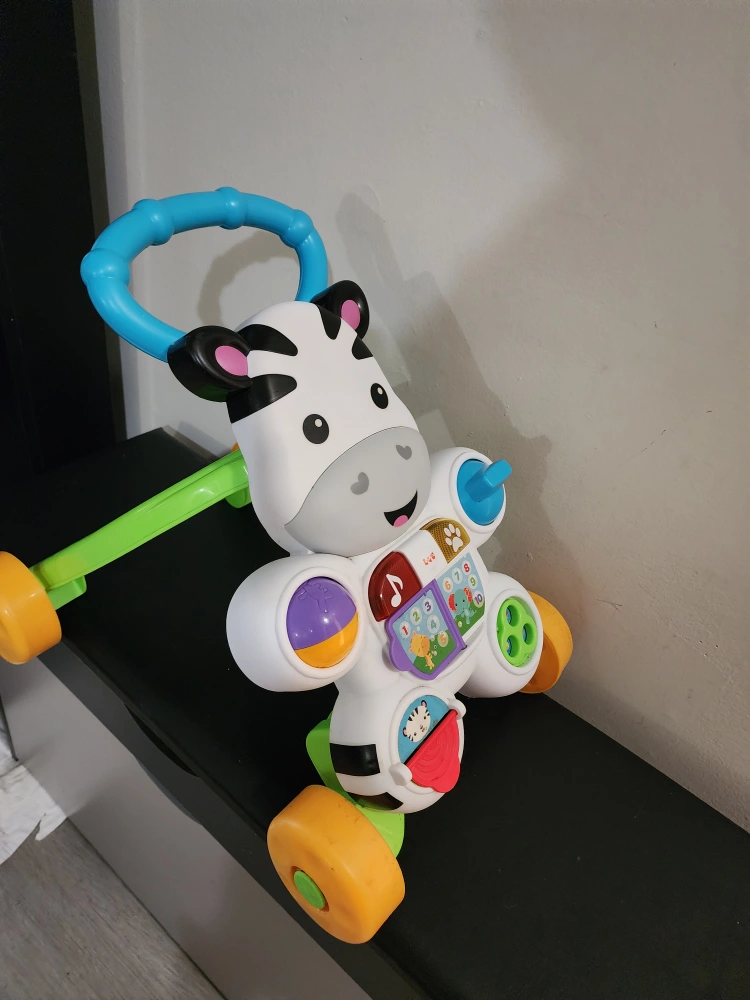 Here's a gently used Fisher-Price Learn with Me Zebra Walker! It's a great toy to help your little one develop their motor skills and learn new things. It has lots of buttons and activities to keep your child entertained!