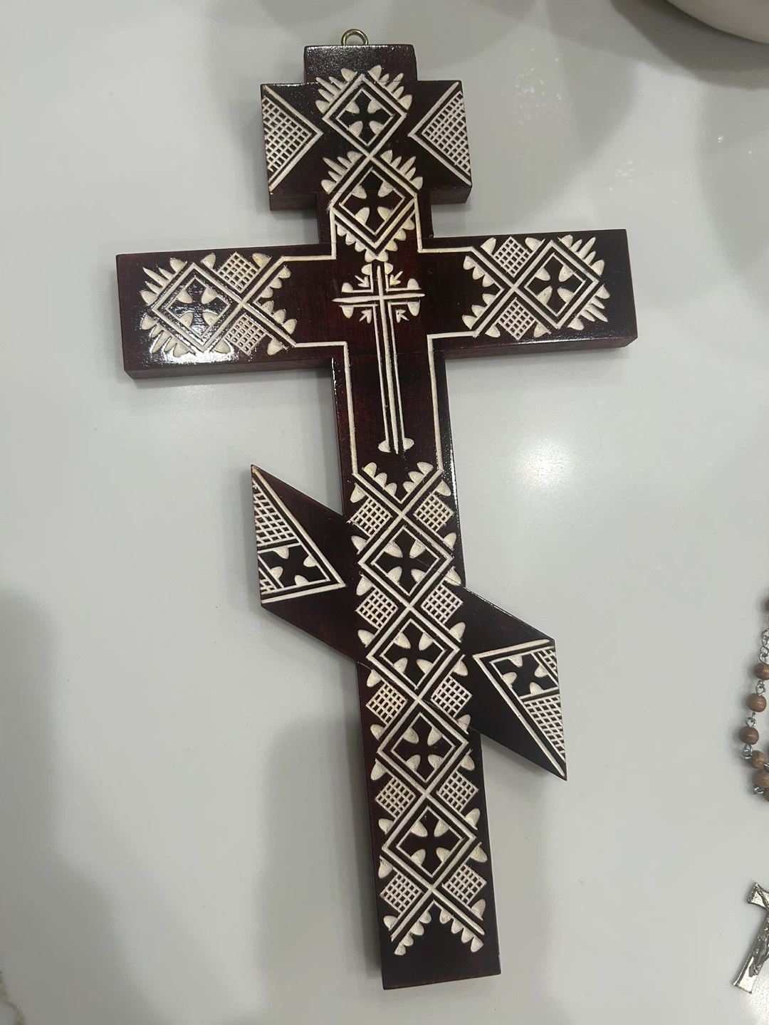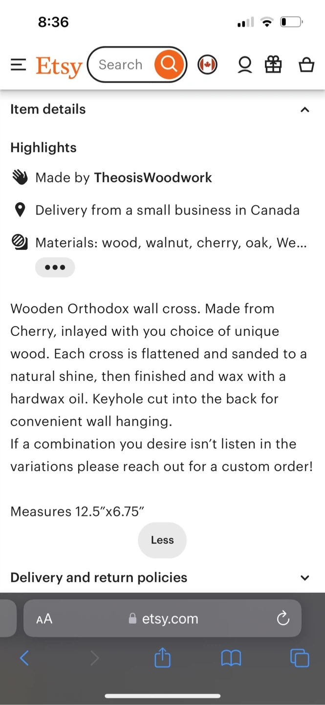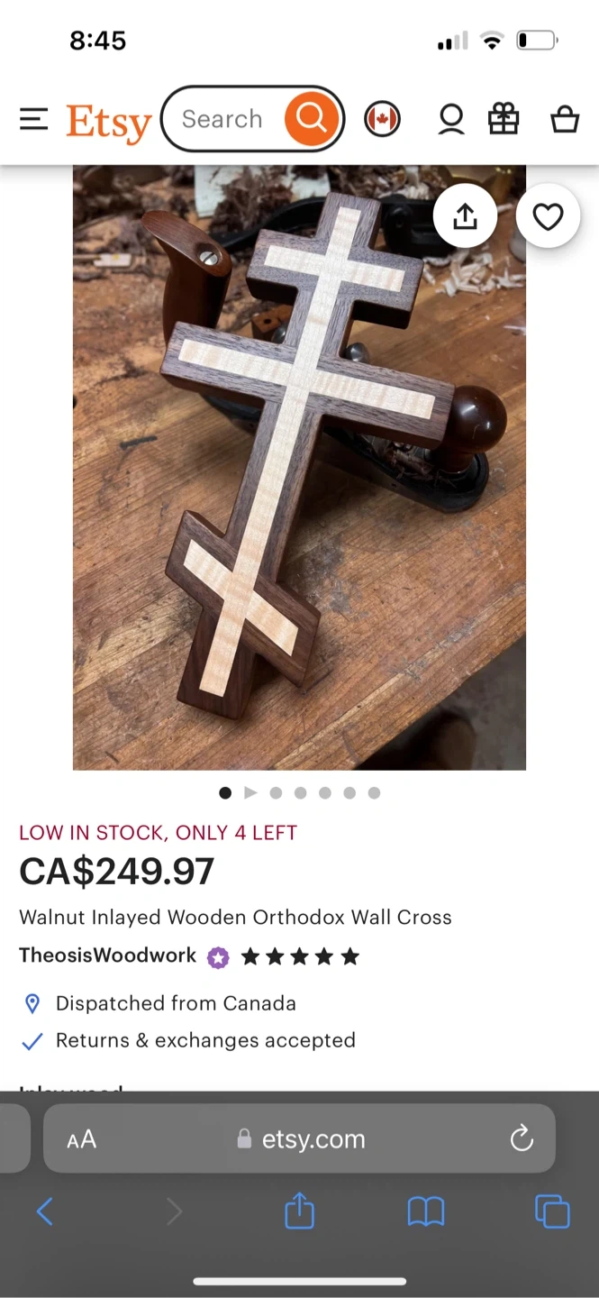 Selling two cherry wood crosses, perfect for any wall or as a gift. High quality Wooden Ukrainian Orthodox wall cross. Made from Cherry, inlayed of unique wood design.Each cross is flattened and sanded to a natural shine, then finished and wax with a hardwax oil.they retail 200 each selling only for 10each . Selling only at low price as they were a gift and to spread kindness
