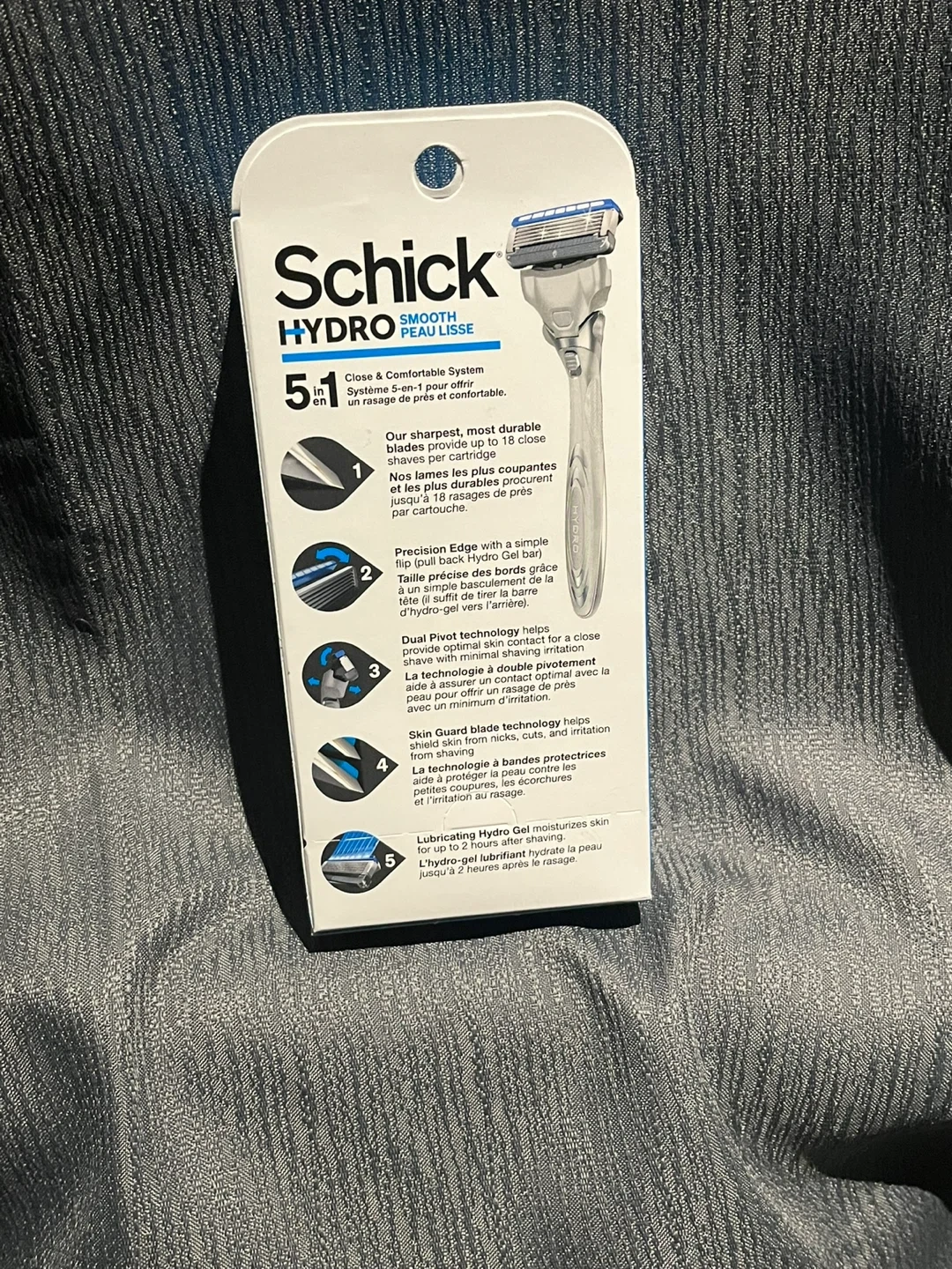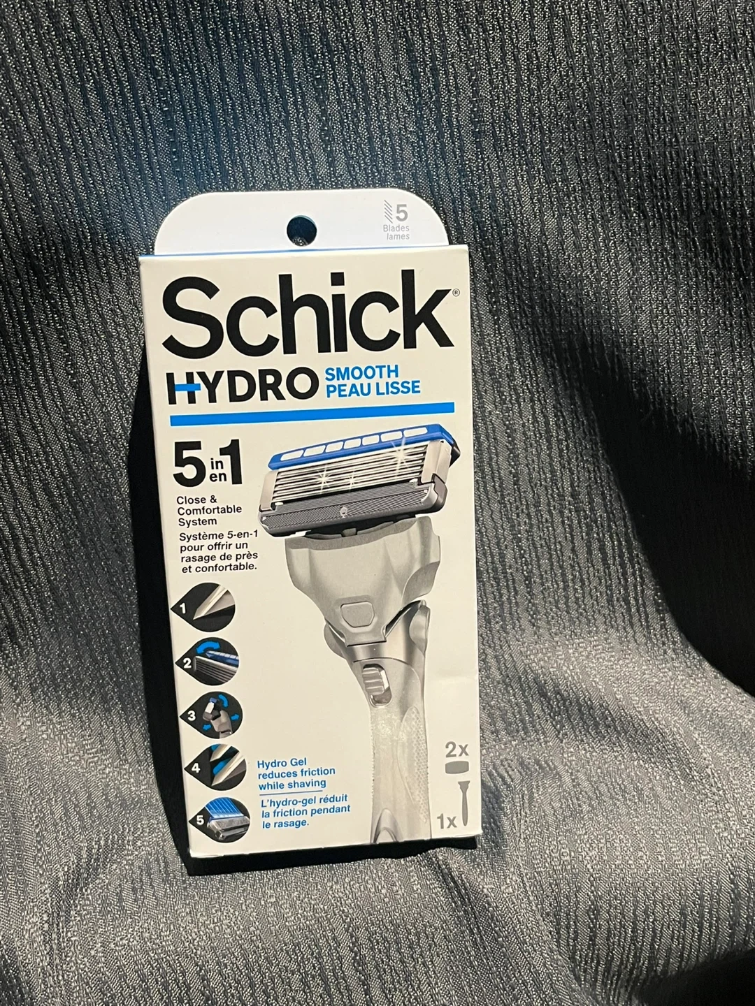Selling a Schick Hydro Smooth Peau Lisse razor! This is a 5-in-1 close and comfortable system. It features lubricating hydro gel that moisturizes skin up to 2 hours after shaving. It includes 5 blades for a smooth shave. Comes with 2 cartridges and 1 razor