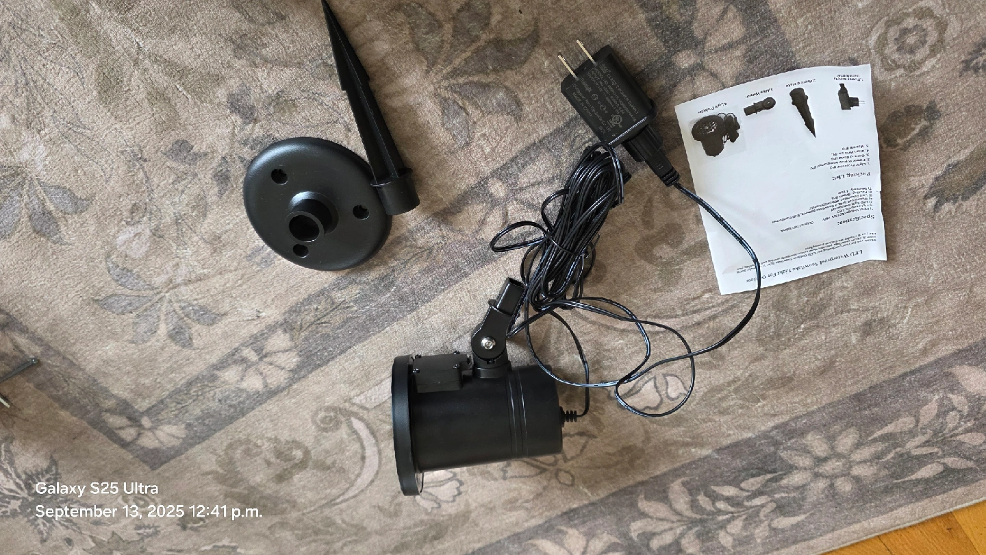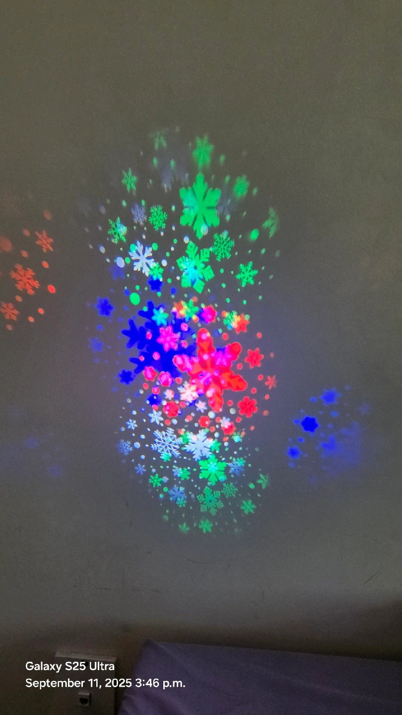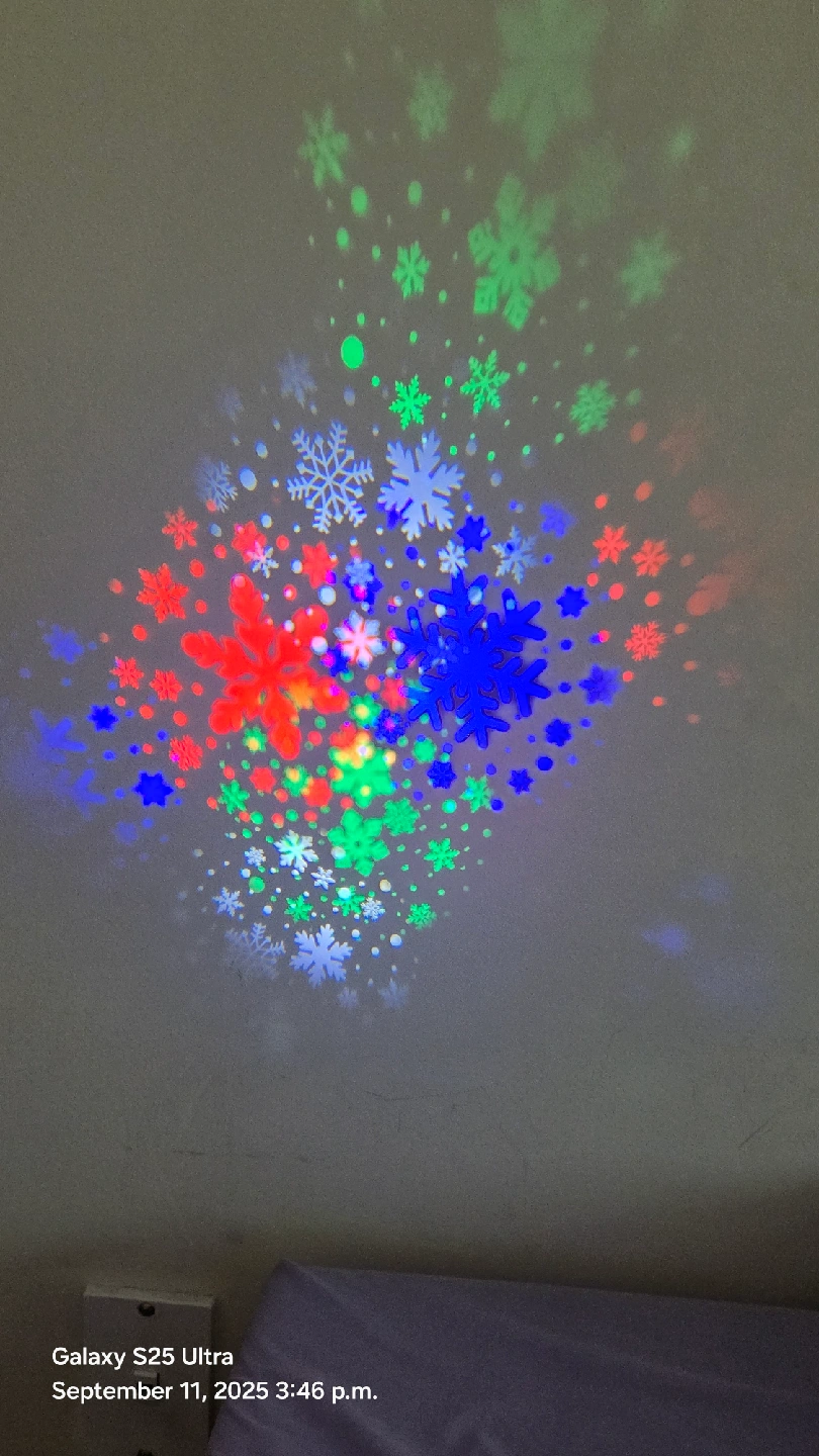 Add some festive cheer to your home with this outdoor LED projector light! It projects a beautiful snowflake pattern in a variety of colours. Easy to set up and includes the stake for outdoor use and the power adapter. water proof and new in box. never been used.