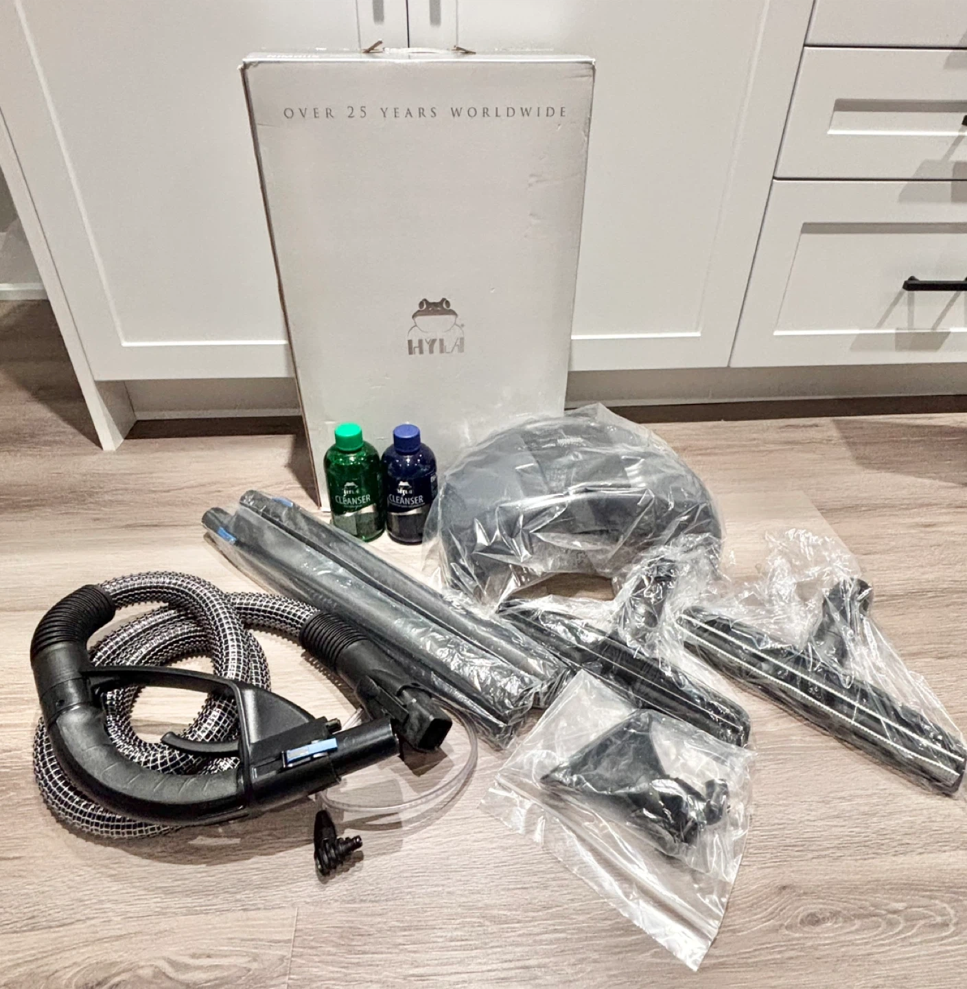 Selling a New , never used Hyla Nimbus vacuum cleaner! It comes with the original box and all the components you see in the pictures. This vacuum has been known worldwide for over 30 years! Part number 45700 Can ship for $20 and deliver to some areas Online price is $899+tax Canadian The NIMBUS Wet Cleaning System (for the HYLA GST/EST) is designed for the Wet Cleaning of hard floors, upholstery, car seats, and most types of carpet. The system comes with everything you need including cleansers for hard and carpeted floors.