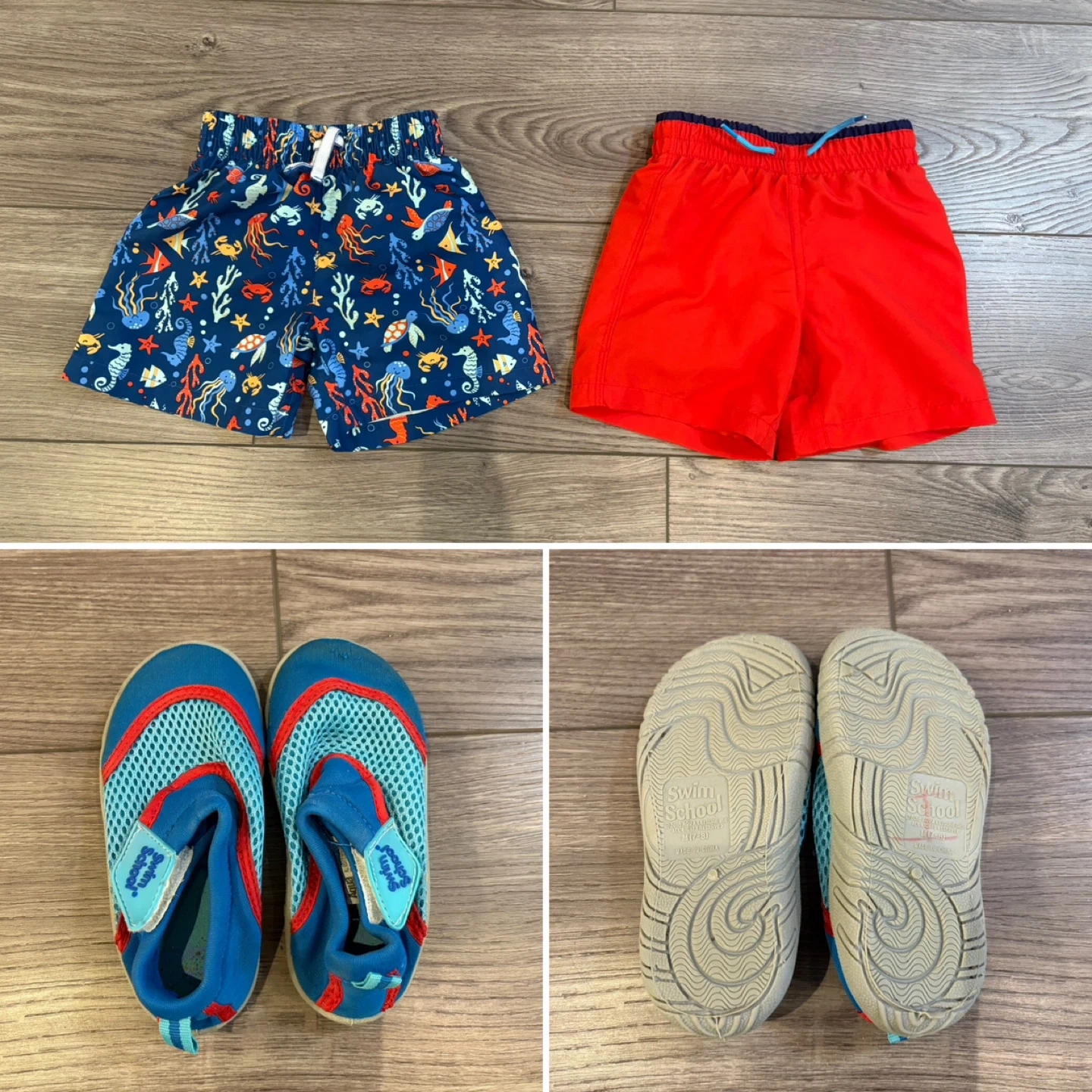 Selling a pair of Swim School water shoes and two pairs of swim trunks! Great for the pool or beach! Pick up in the Yonge and Finch area.