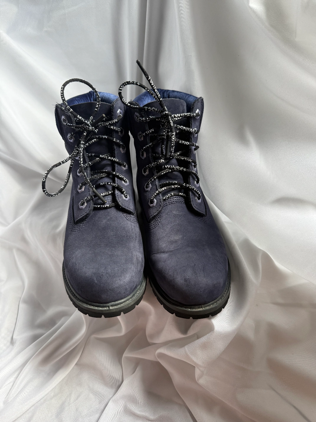 Selling a pair of Womans Timberland boots in size 9.5 US. They are in excellent condition and ready for a new home! The boots are a stylish blue colour.