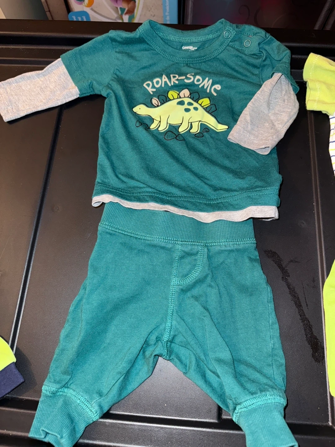 Selling two adorable baby pajama sets, perfect for your little one! Both sets are size 3-6 months and in great condition. One set features a cute embroidered design, and the other has a fun dinosaur graphic. They're soft and comfy for a good night's sleep!
