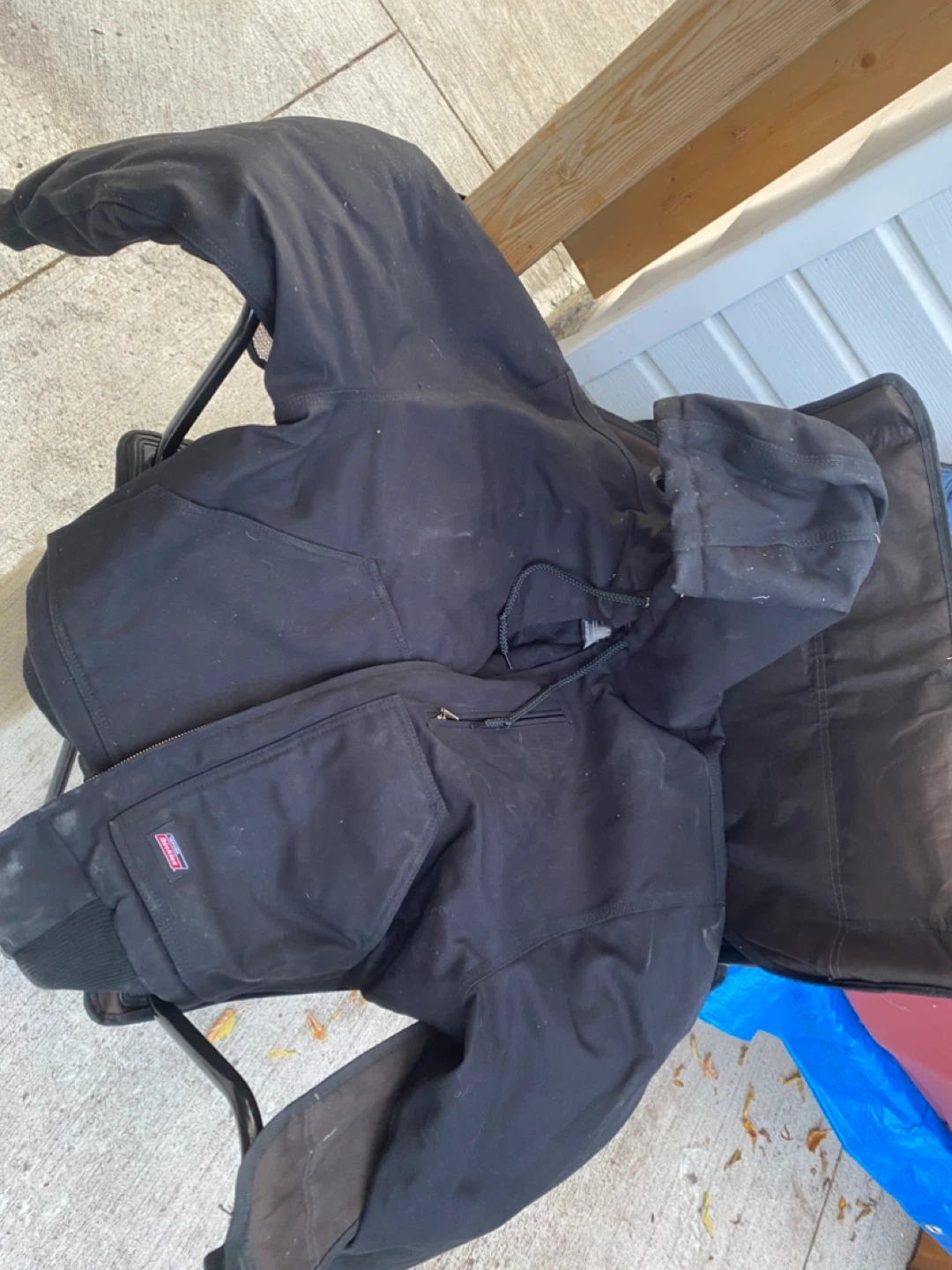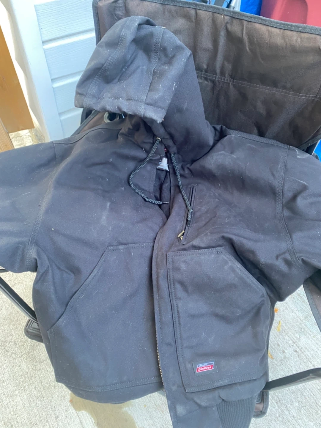 Selling a black Dickies hooded jacket. It's in good condition and ready to keep you warm!