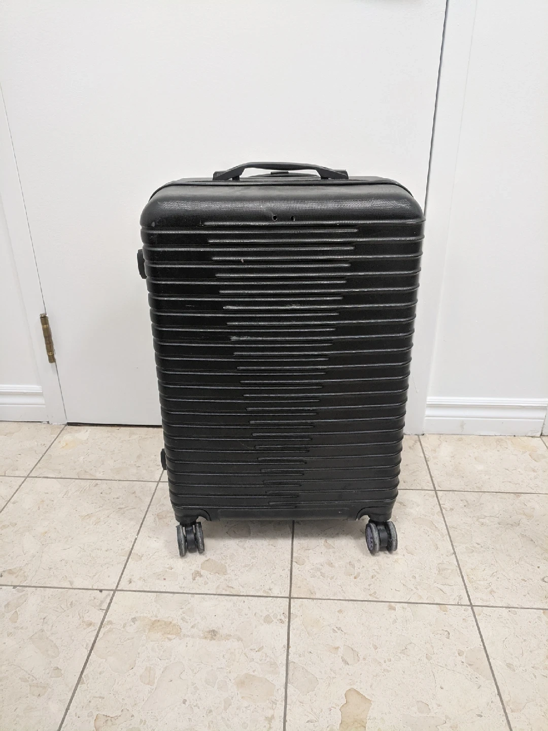 Selling a black rolling suitcase. It's old but okay and ready for your next trip! It has a retractable handle and four wheels for easy maneuvering. the size is 17"x10"x25". pick up at 195 Merton Street Toronto or pick up at the subway station Davisvill. And I can deliver it to you house but you need to pay me another$3. Thanks.