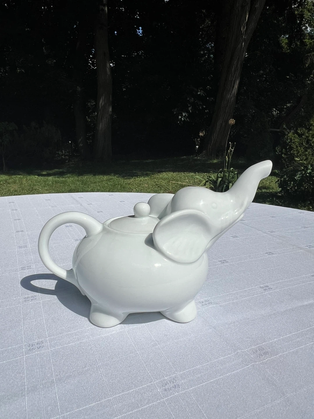 Selling a charming white ceramic teapot shaped like an elephant! It's in great condition and would be a lovely addition to any tea collection or as a unique decorative piece