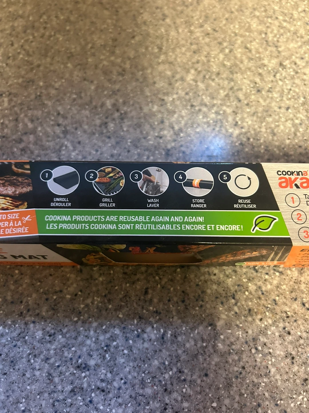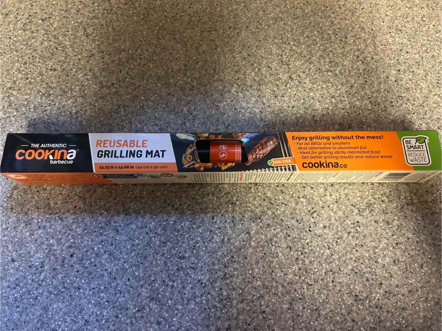Never used Cookina non-stick reusable grilling mat. It’s 15.75 x 19.68 in ( which is 40 x 50 cm). Works for all BBQ and smokers.