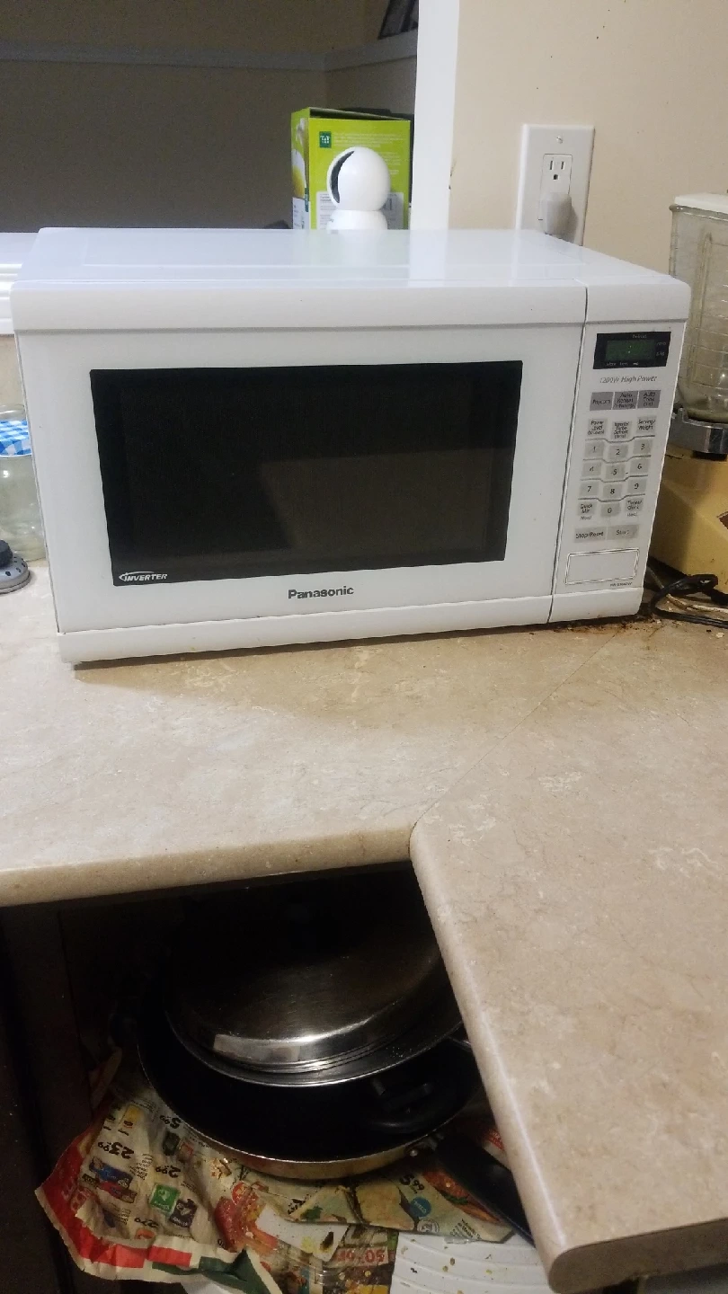 Selling a white Panasonic Inverter microwave. It's in good working condition and ready for a new home! Perfect for quick meals and reheating leftovers. A reliable appliance for any kitchen