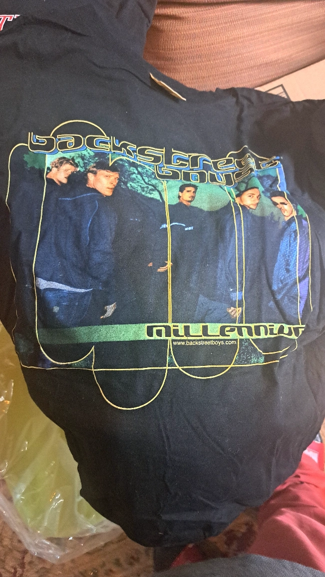 Selling a Y2K Vintage Backstreet Boys Millennium T-shirt. It's black with a graphic of the band on the front. Great for any 90s music fan! purchased feom the 1999 tour by myself. only worn 5-6 times.