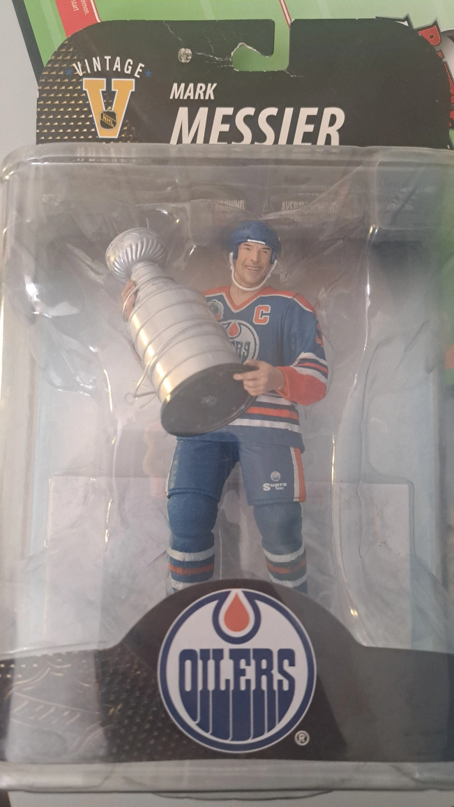 Vintage NHL Mark Messier action figure in the original packaging. It's a great collectible for any Oilers or hockey fan! made in 2008, still in original packaging. cardboard is a bit bent / others in similar condition going dor 75+ shipping on ebay