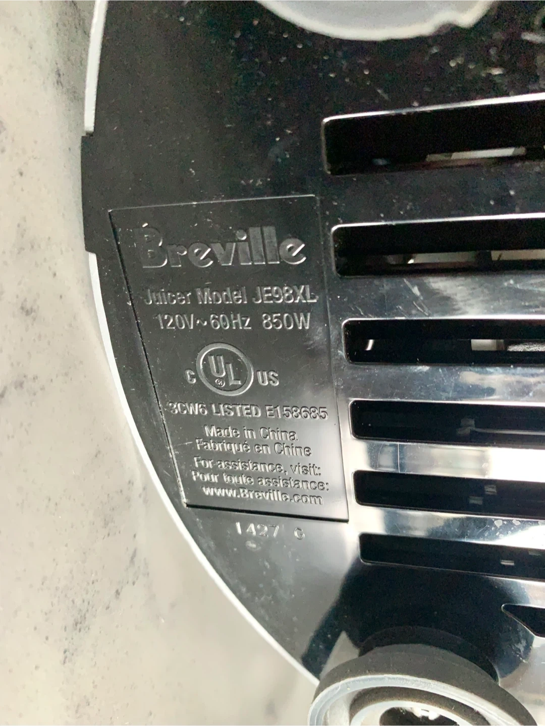 In good condition, a used 2 speed juicer with jug. Only selling to make space in a tiny kitchen! Please note, there are scratches on the unit due to storage โ see photos. Retails for $200. Model: JE98XL Wattage: 850 W Jug Capacity: 1 L (34 fl. oz.) Juice jug with lid Pulp Container Capacity: 3 L Pulp Container **Pick Up Only near Lonsdale and Spadina Road, Toronto.** First Come, First Served.