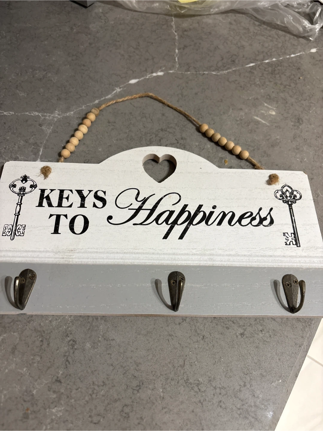 This grey/cream coloured key holder says 'Keys to Happiness' and has three hooks for your keys. It's a great way to keep your keys organized and add a little charm to your home… pick up on Chando Drive in Chicopee area of South Kitchener N2A4H8!