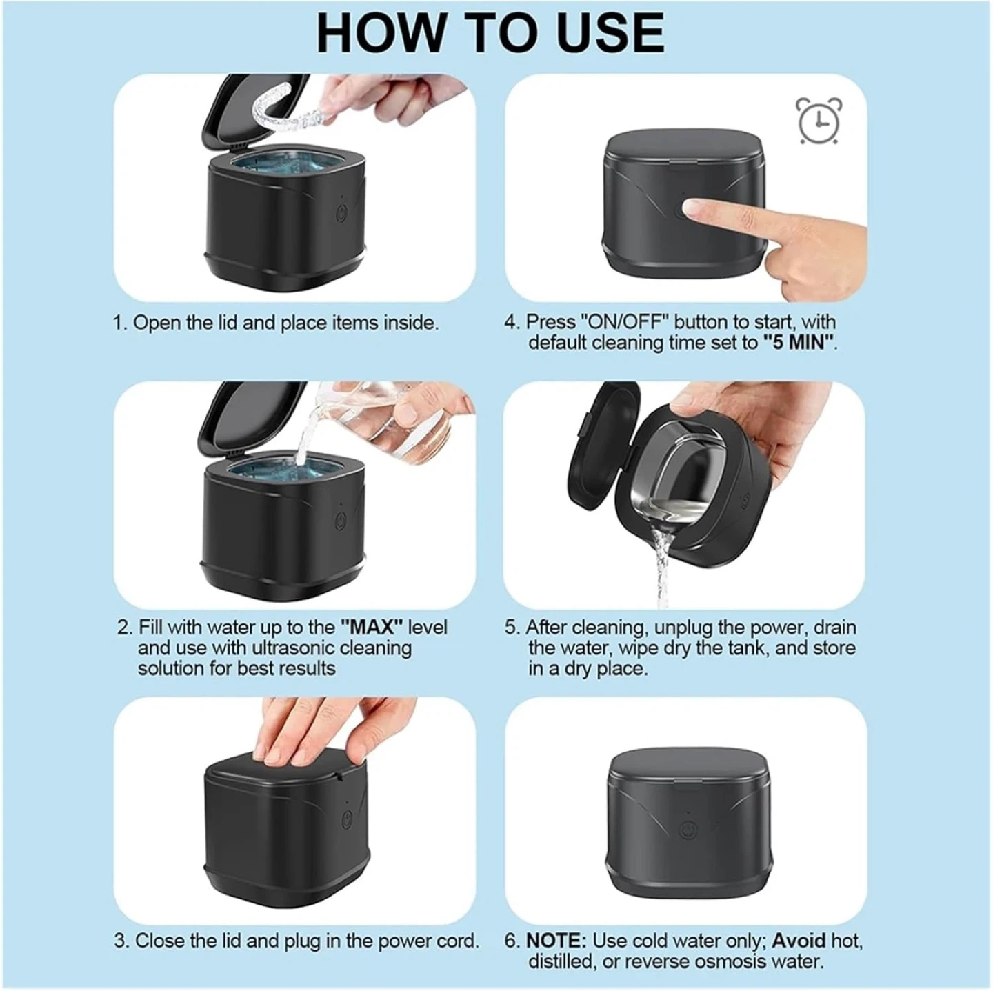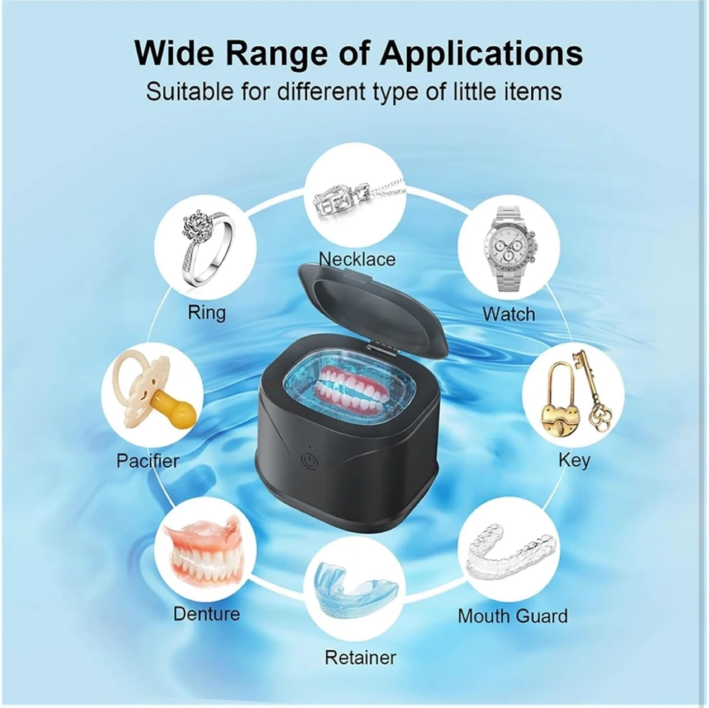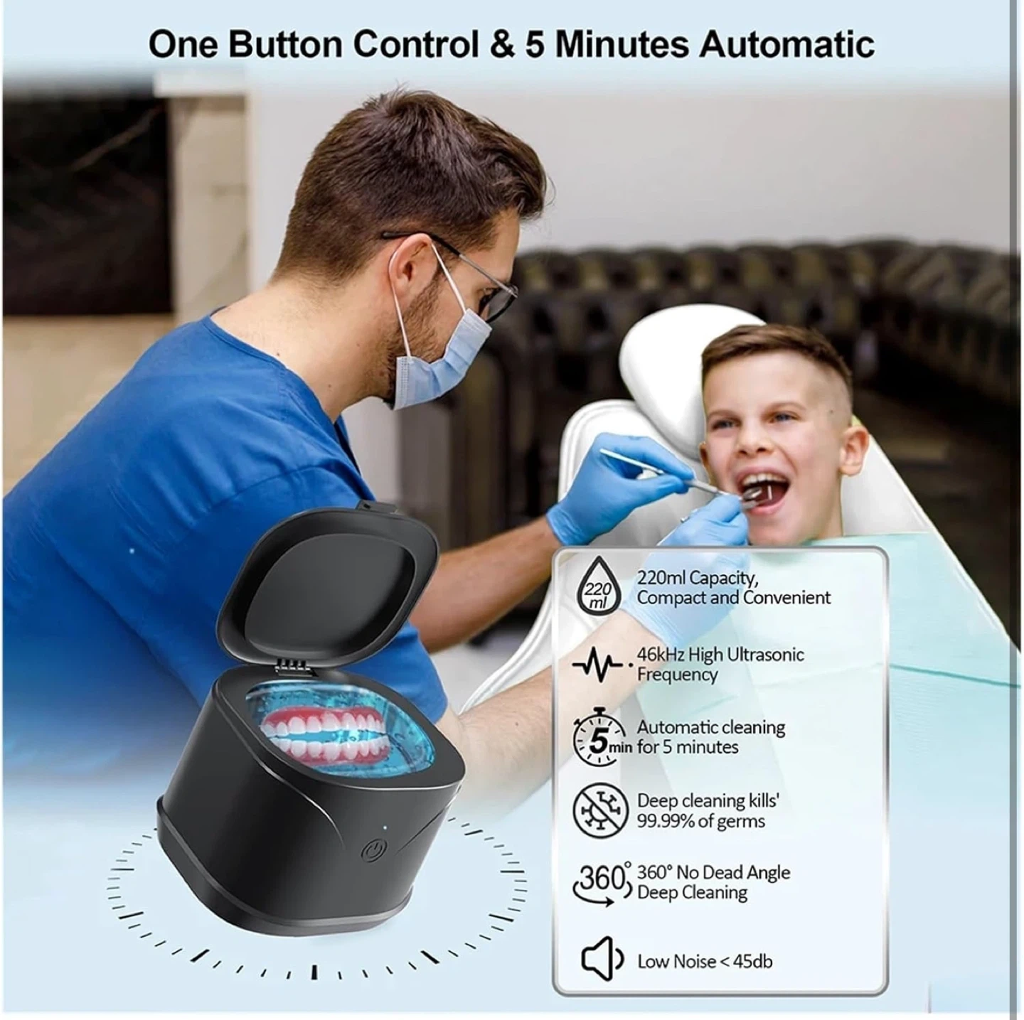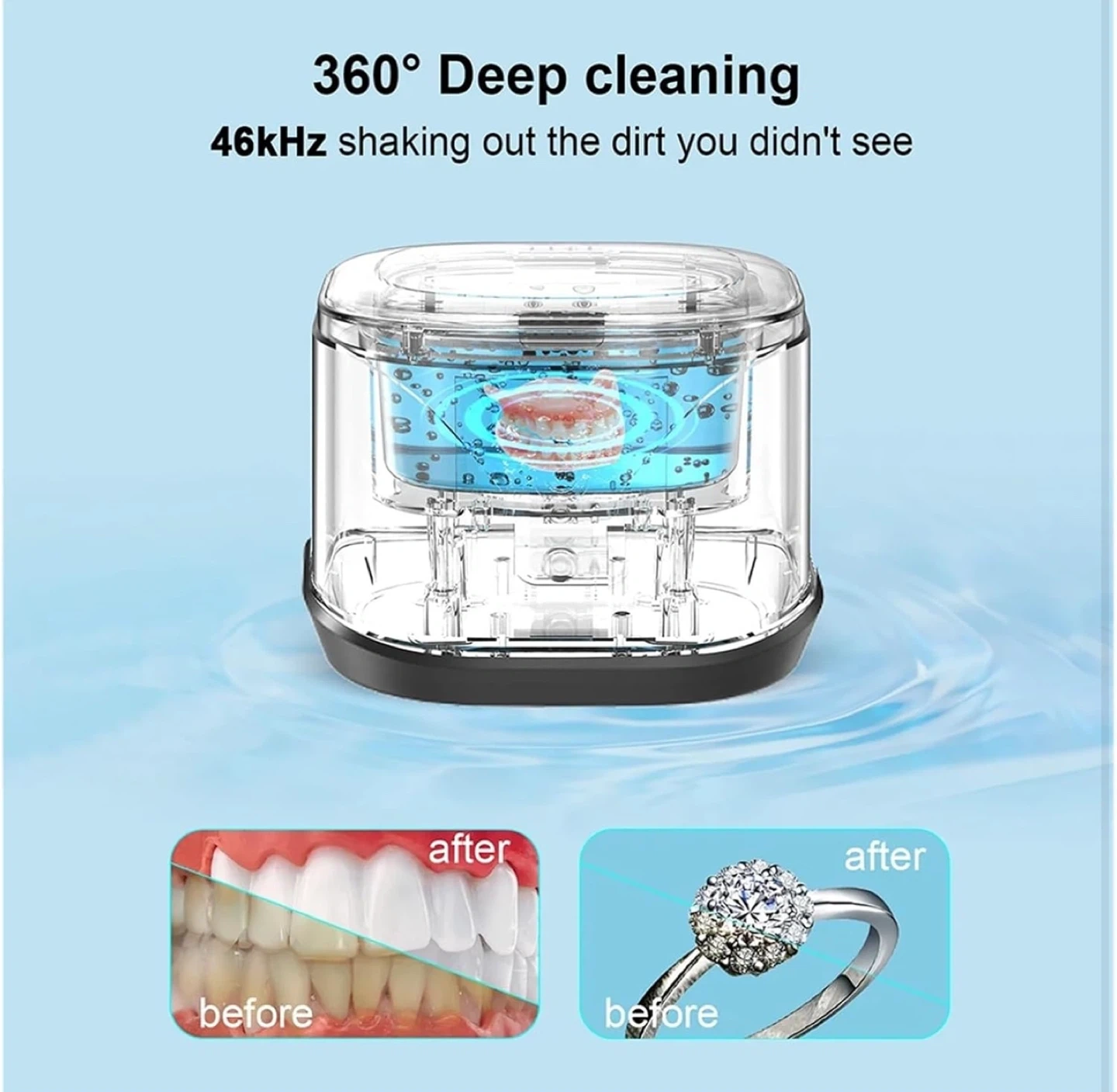 Keep your small items sparkling clean with this ultrasonic cleaner! It's great for dentures, jewelry, retainers, and more. Key features: - 220ml capacity - 46kHz high ultrasonic frequency - Automatic 5-minute cleaning cycle - 360° deep cleaning Ultrasonic Cleaner Machine 46000h|46000H Ultrasonic Frequency:Utilizes 46000Hz ultrasonic waves for a thorough 360° clean, ensuring no dirt is left behind. Large 220ml Capacity:With a 220ml capacity, this ultrasonic cleaner is for cleaning multiple items at once. Portable Design:Compact and lightweight, this ultrasonic cleaner is easily portable for on-the-go cleaning needs. Versatile Cleaning Applications:Suitable for a range of items, from jewelry to retainers and glasses, this cleaner is a versatile tool. Effortless Operation:One-touch operation makes this ultrasonic cleaner effortless to use,for everyday maintenance.