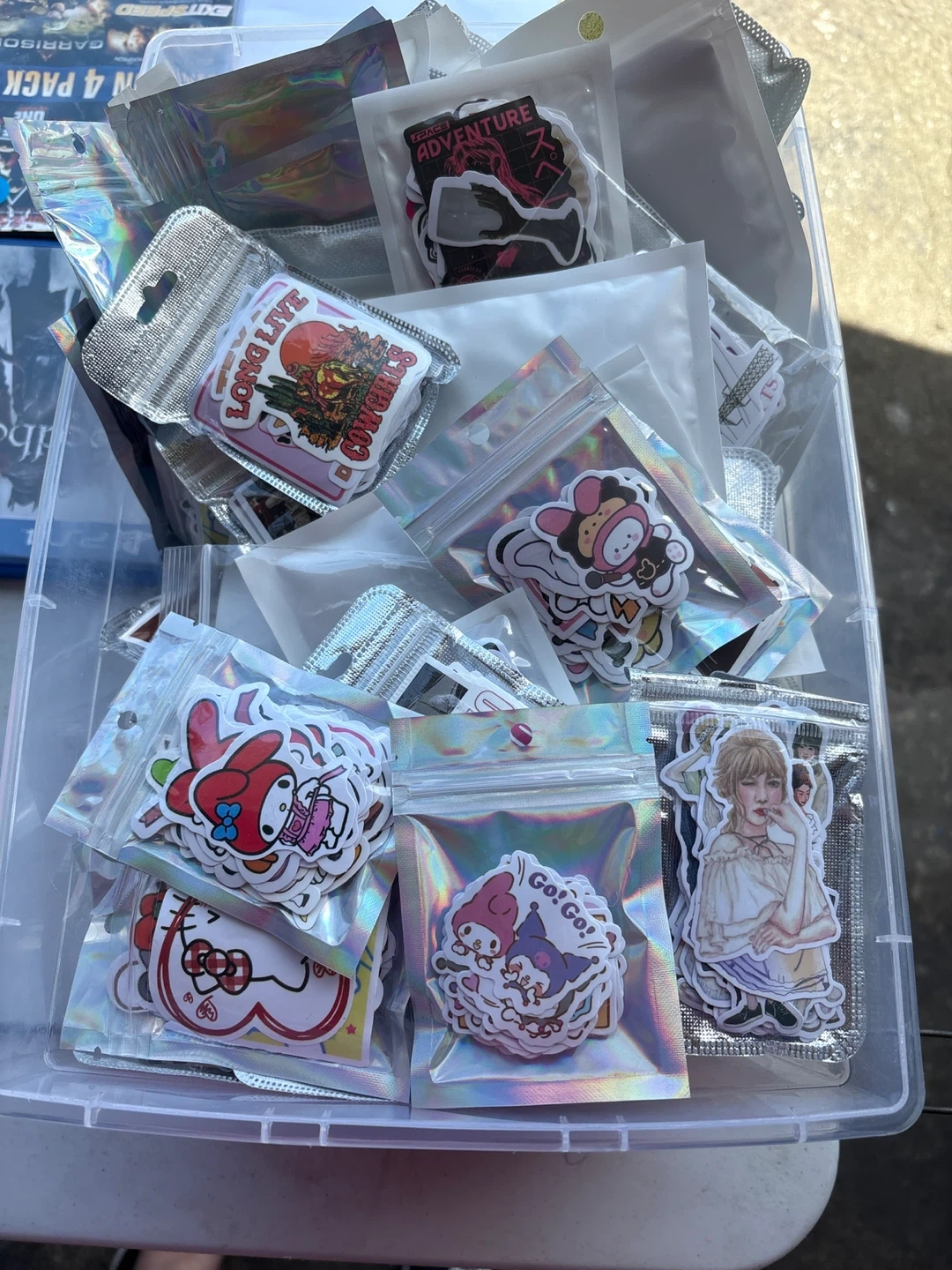 Selling a variety of cute stickers! There's a mix of different designs, including My Melody, cowboy themed, and adventure stickers. Perfect for decorating laptops, water bottles, or anything else you can think of You can pick what ones you want have over 100 packs