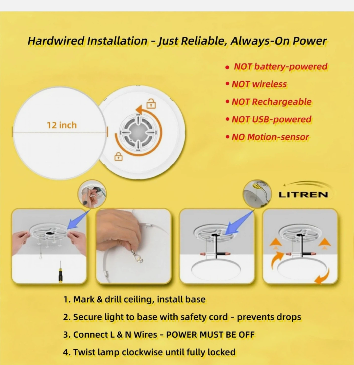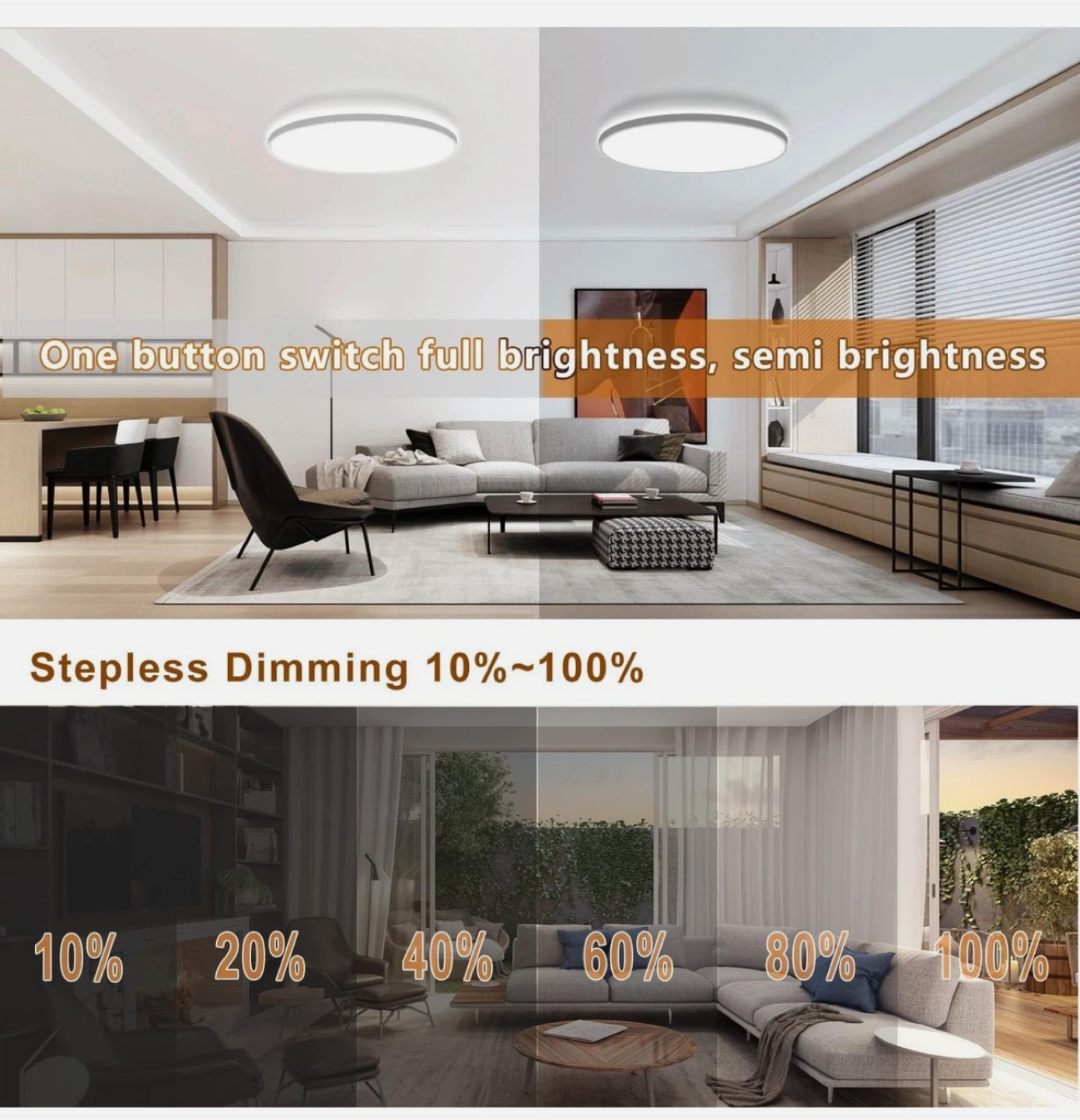Looking to brighten up your space? Check out this LITREN LED ceiling light! It's 12 inches in diameter and offers adjustable color temperatures via remote control or wall switch. Key features: - Dimmable - Memory function (30/60 minutes) - 30,000H lifespan - Night light mode (3000K brightness to 5-6%) - Timing shutdown (30 minutes/1 hour)