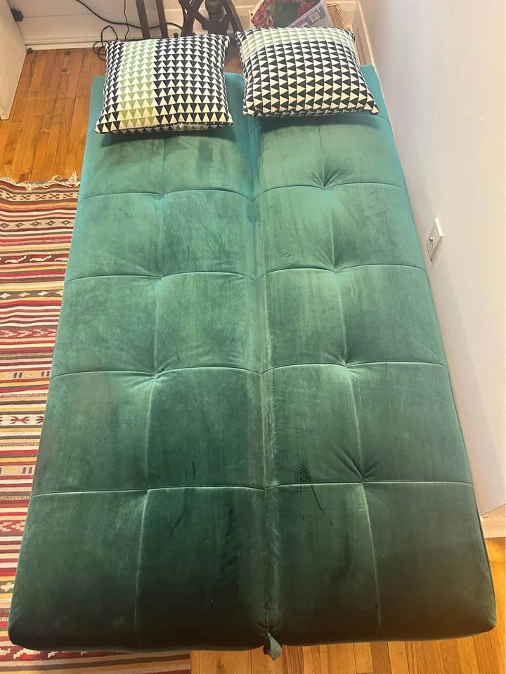 Structube Sofa bed green tufted velvet(DELIVERY AVAILABLE)