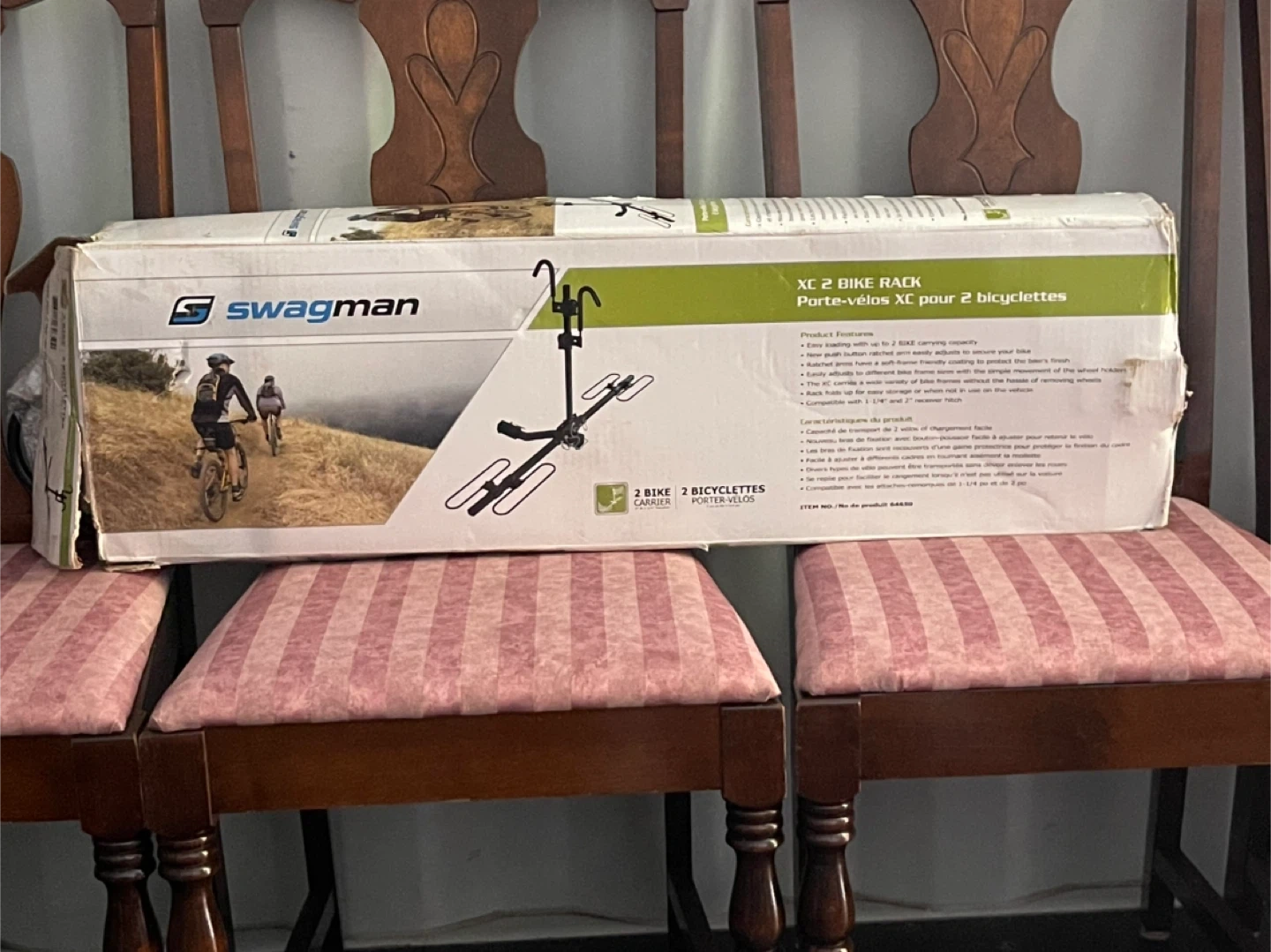Selling a Swagman XC 2 bike rack that can carry up to 2 bikes! It features easy loading and has ratchet arms with a soft-frame friendly coating to protect your bike's finish. The arms easily adjust to different bike frames, and it folds up for easy storage!