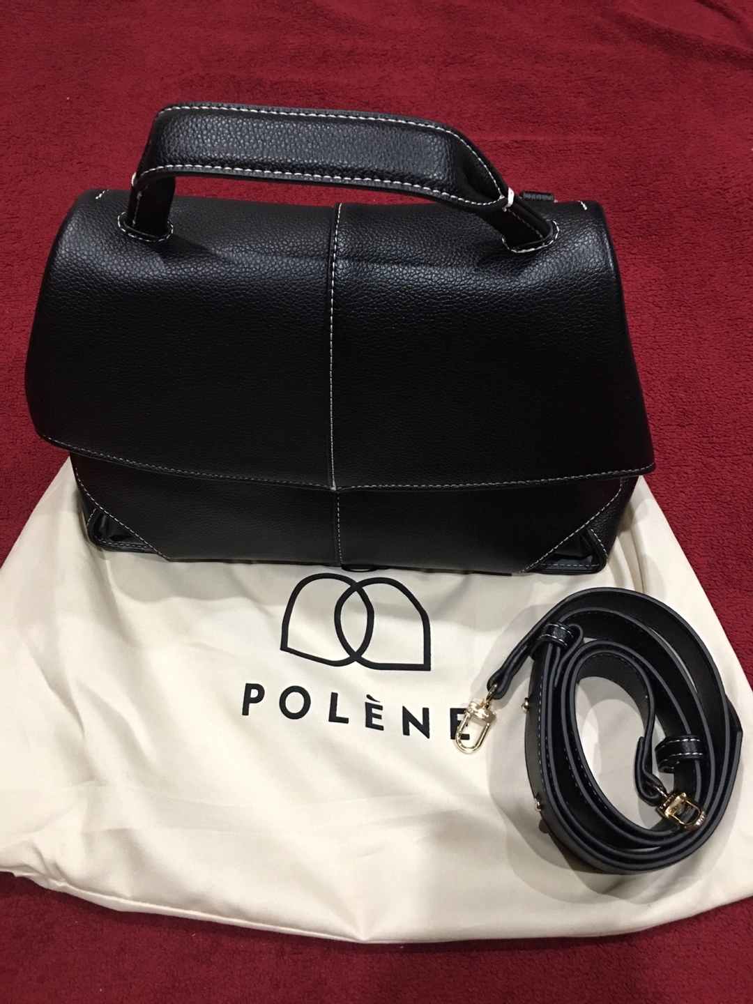 Selling a stylish Polène handbag in black leather. It's in great brand new condition . Perfect for everyday use or special occasions. Comes with a detachable strap. Pick up at Southgate Mall after 6pm on weekdays, weekends between 5-6pm Cash only Price reflects authenticity