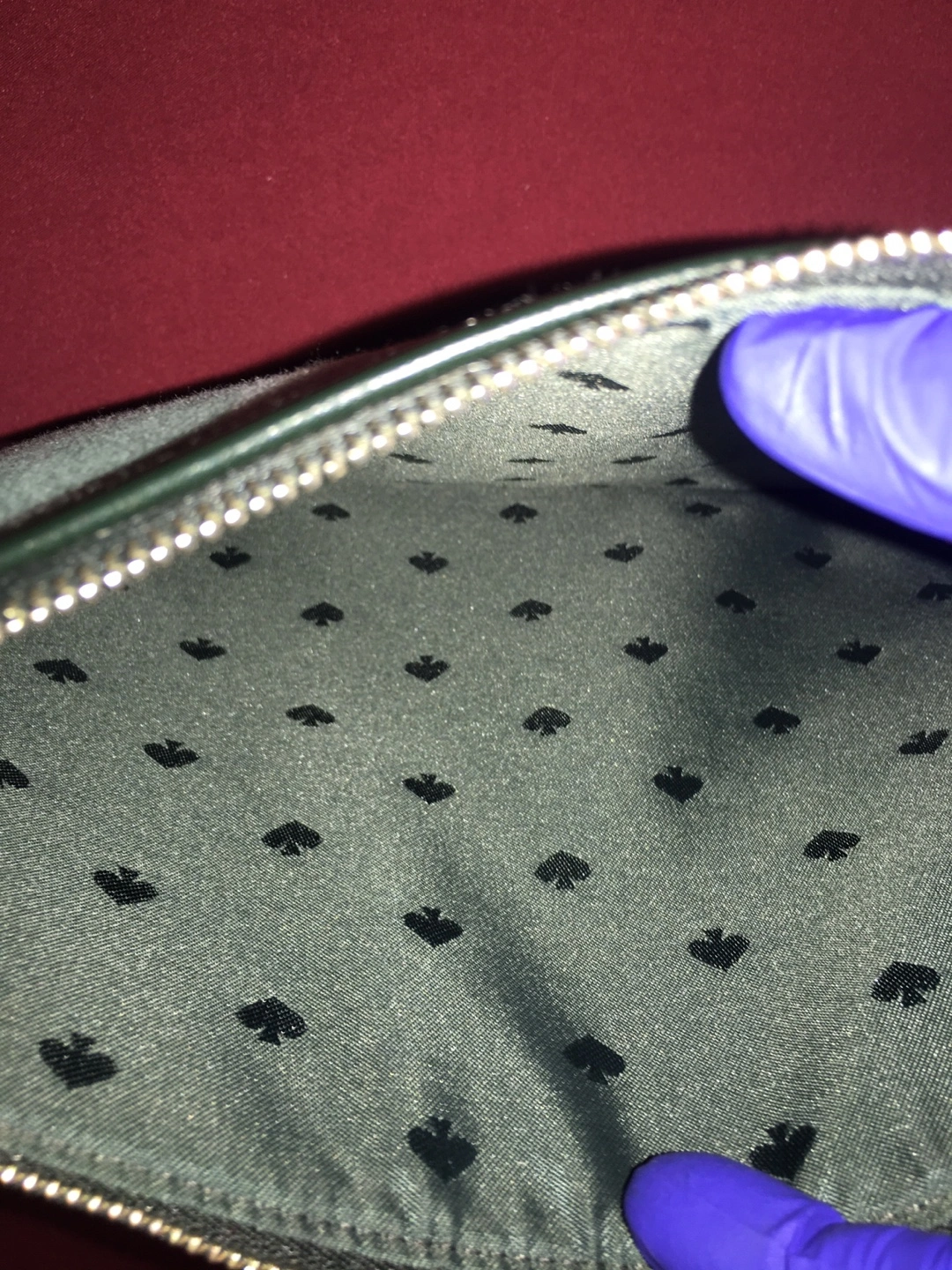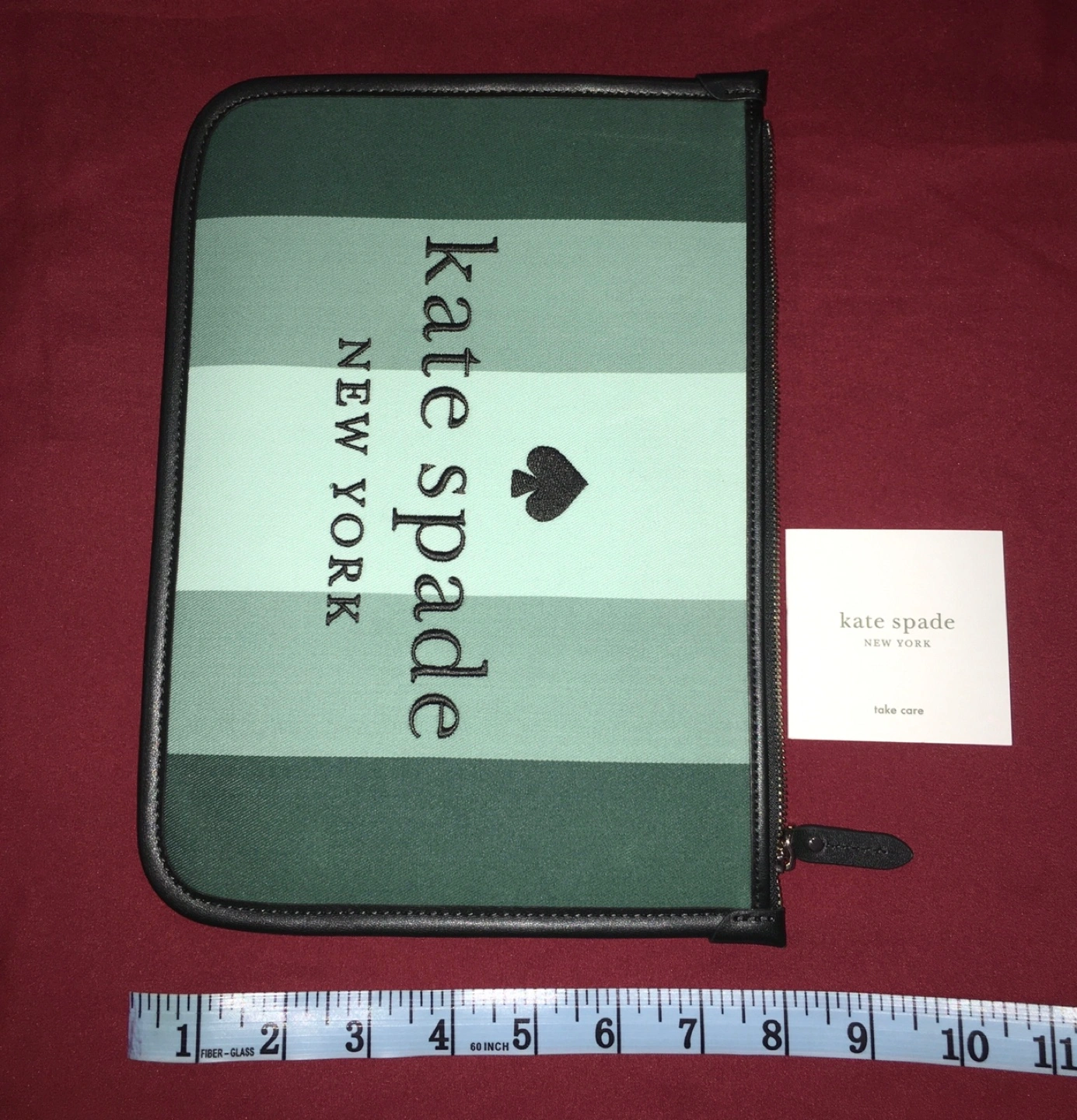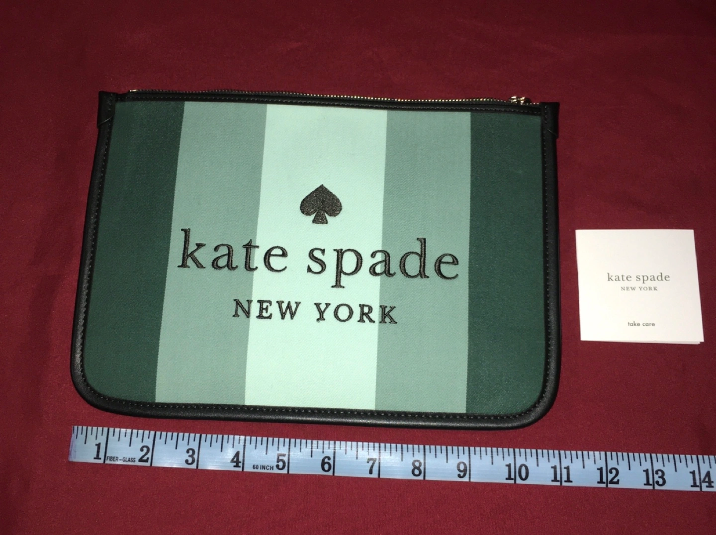This is a Kate Spade New York pouch with a striped design in shades of green. The interior lining features a spade pattern. It's in great brand new condition . Pick up at Southgate Mall after 6pm on weekdays, weekends between 5-6pm Cash only Price reflects authenticity