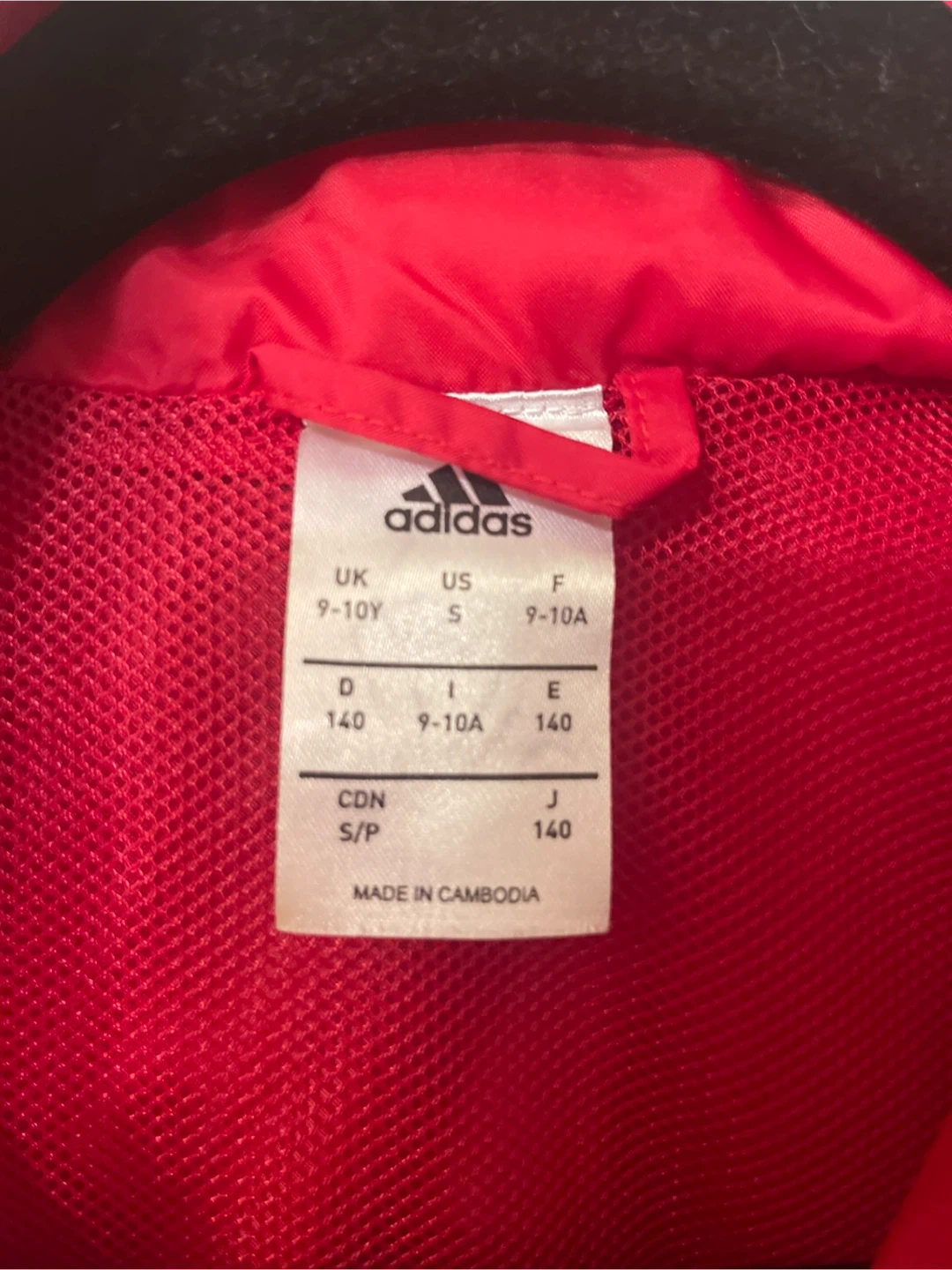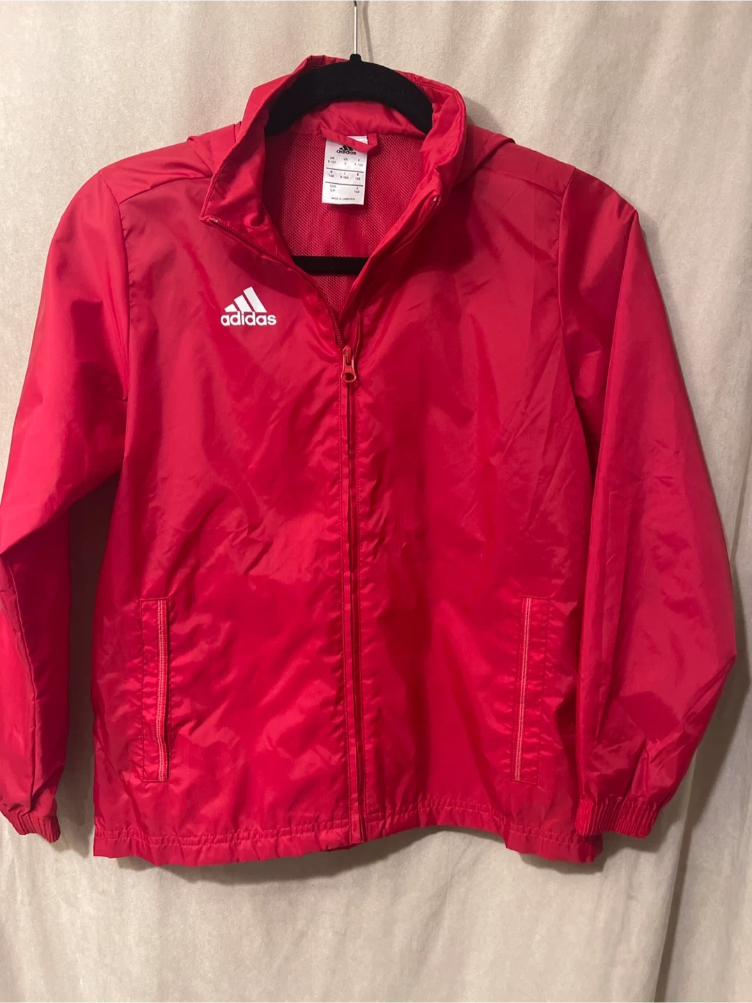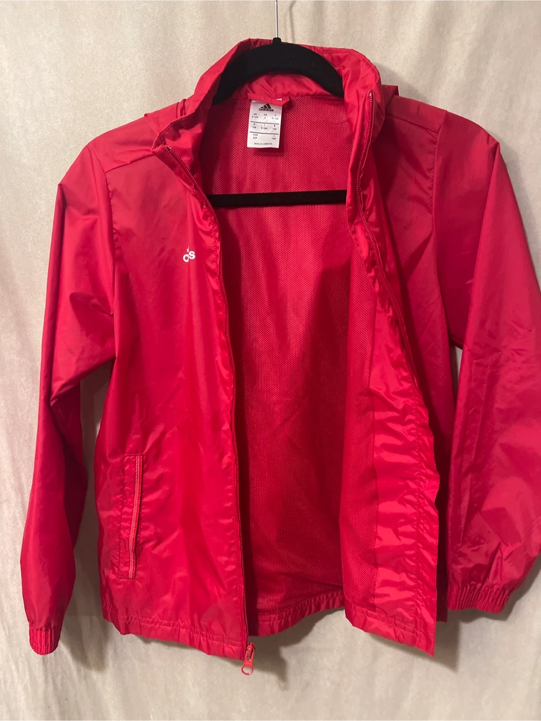 Selling a kids bright red Adidas windbreaker jacket! It's in great shape and perfect for those breezy days. The size is a small (S).