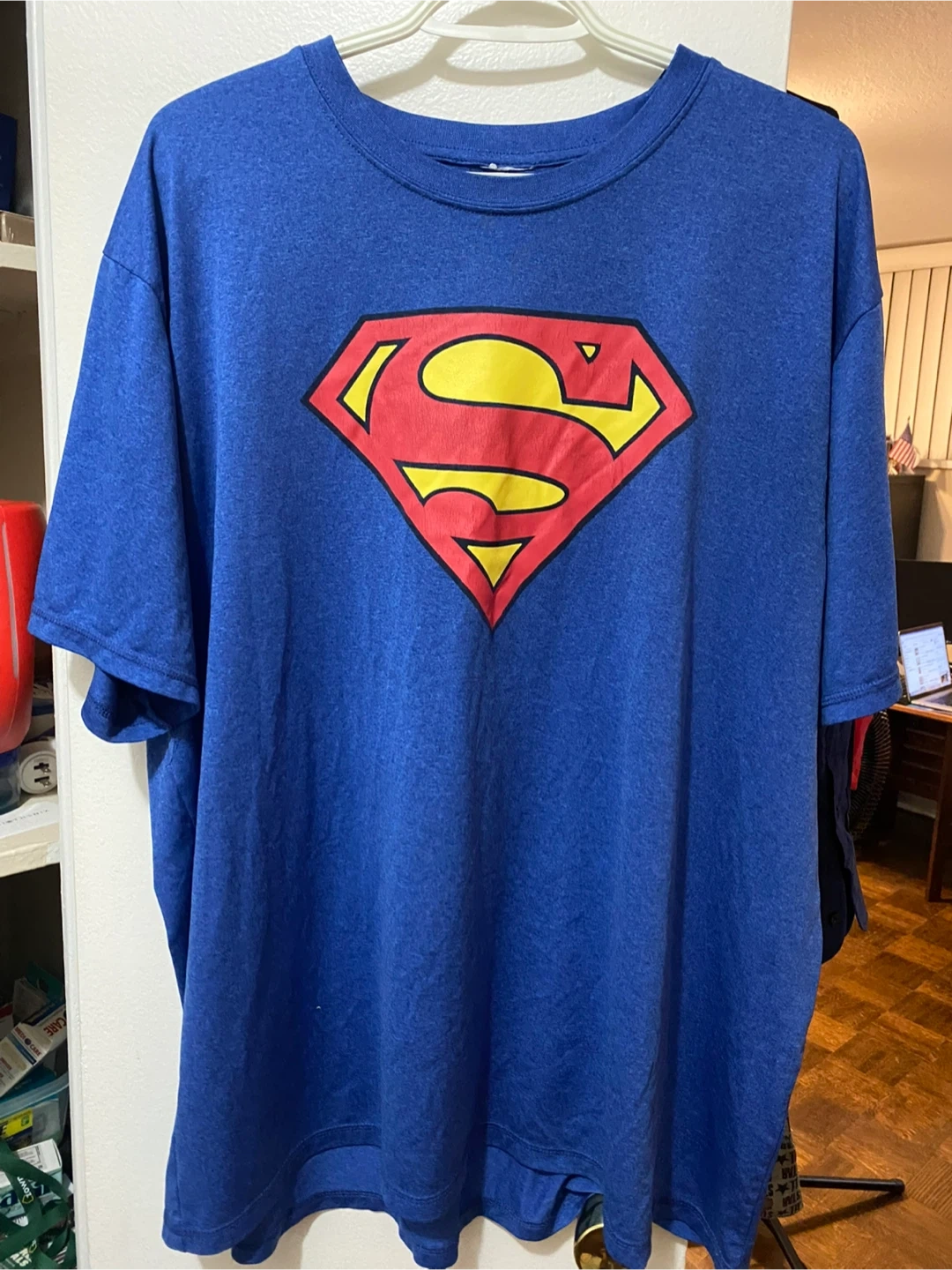 Here's a blue Superman t-shirt! It's in great condition and ready for a new home. Perfect for any DC Comics fan!