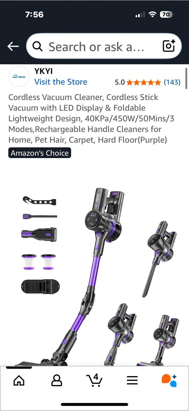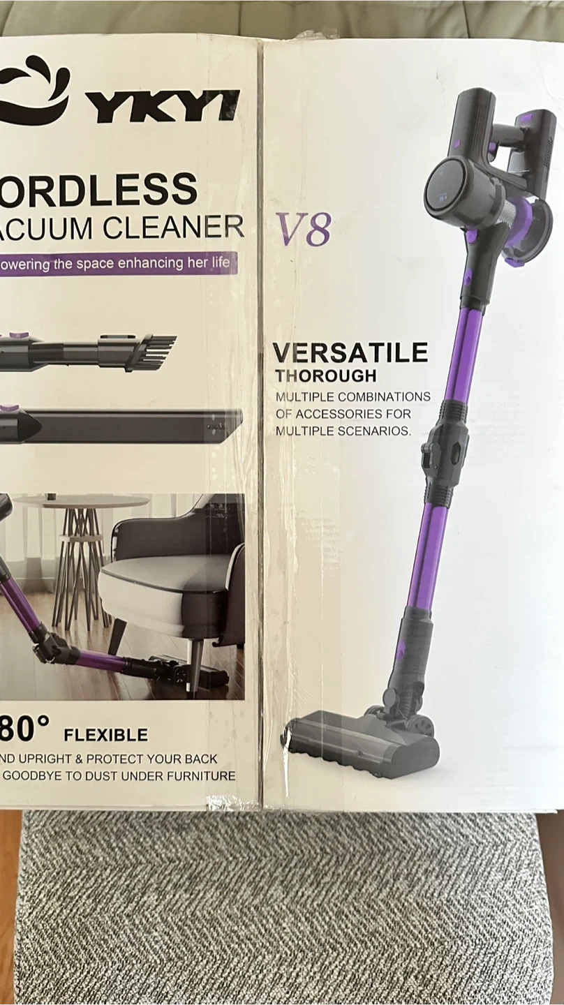 Selling a YKYI cordless vacuum cleaner. It features a lightweight design and powerful suction for deep cleaning on all floor types. - LED display - Foldable design - 40KPa/450W/50Mins/3 Modes - Rechargeable handle cleaners for home, pet hair, carpet, and hard floors New open box