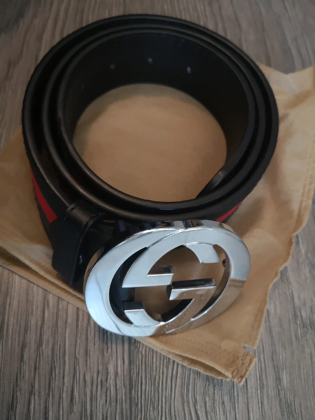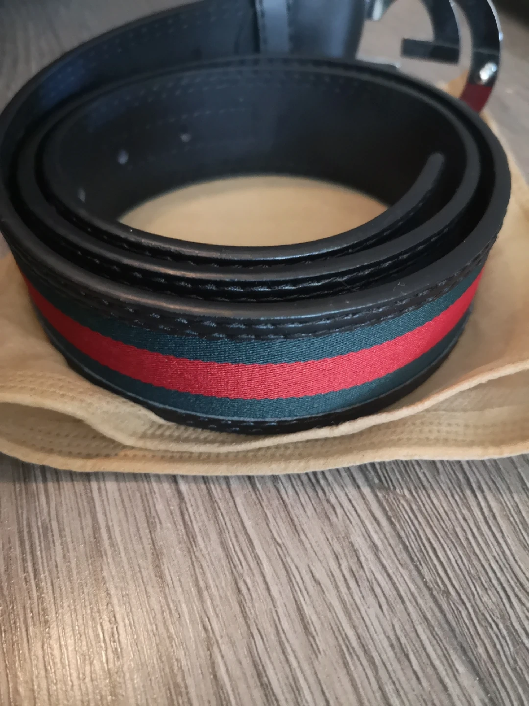 Selling a Gucci belt with the iconic logo buckle. It features the classic green and red stripe design. The belt is in great condition and ready to elevate your style!