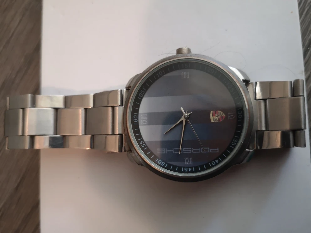 Selling a Porsche men's watch. It's a stylish timepiece with a silver-tone bracelet. The watch face features the Porsche logo. It's in good condition and ready to wear!