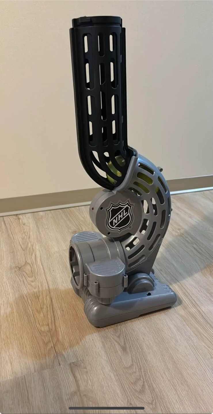 Get your little hockey star ready with this NHL automatic puck feeder! It's in great condition and perfect for practicing shooting skills at home. Load it up and let the fun begin!