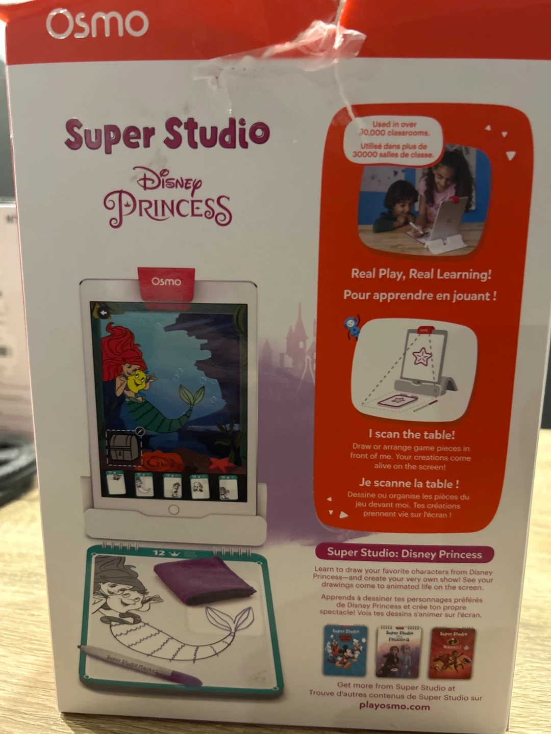 Get creative with this Osmo Super Studio Disney Princess Starter Kit! It's perfect for kids aged 5-10 who love to draw and bring their creations to life on the screen. The kit includes everything you need to get started, and it's used in over 30,000 classrooms! Comes with the original box
