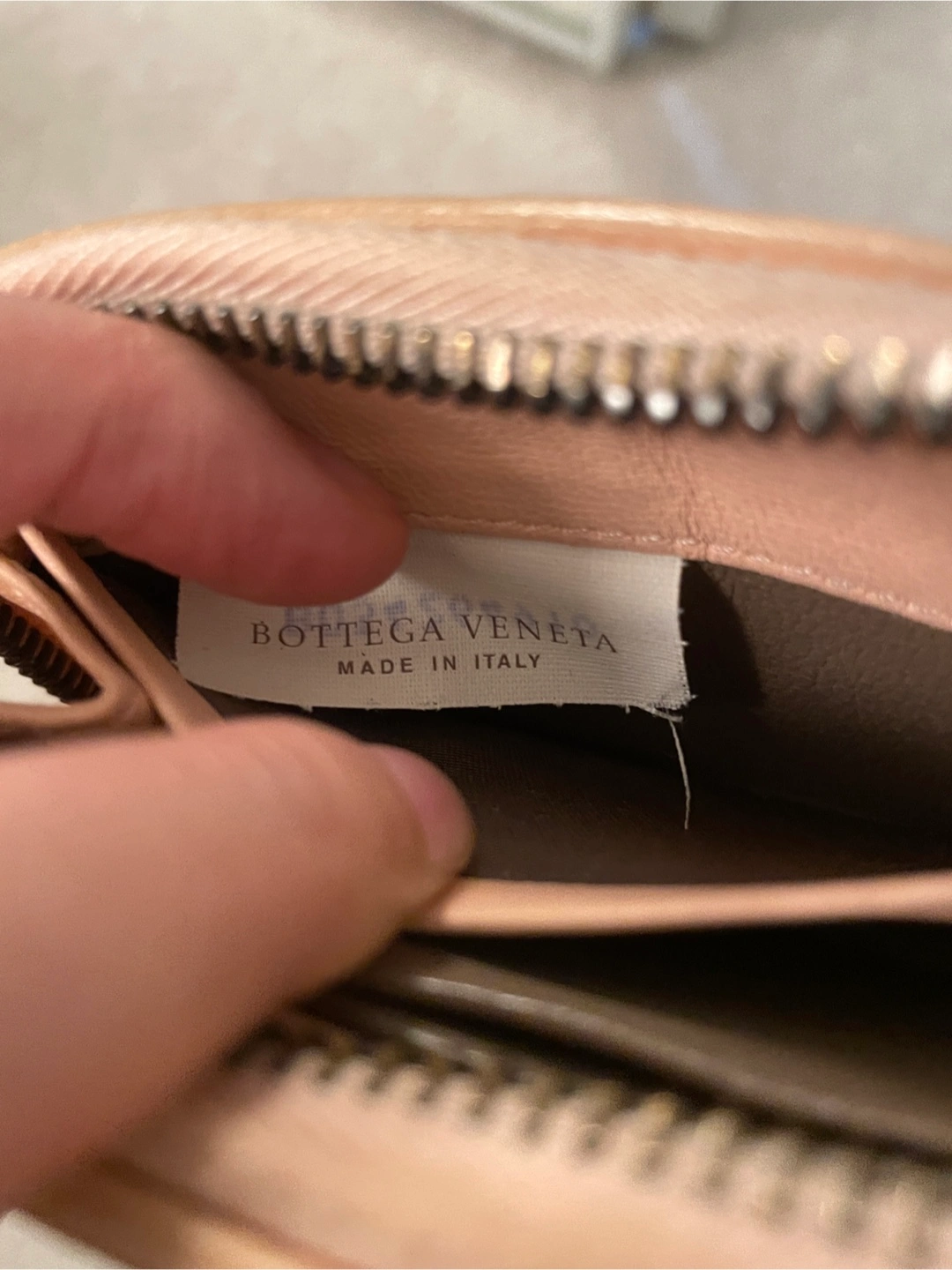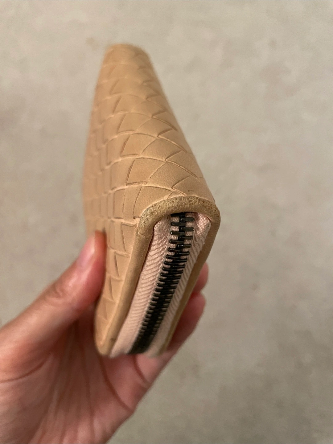 Selling a Bottega Veneta wallet in a lovely beige colour. It's made of leather and has a unique woven design. This compact wallet is perfect for everyday use!